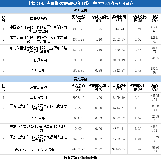 今日龙虎榜单上出现了深股通的身影,占据了买四、卖一的位置,净卖出4505.79万元,占当日成交总额的1.14%。