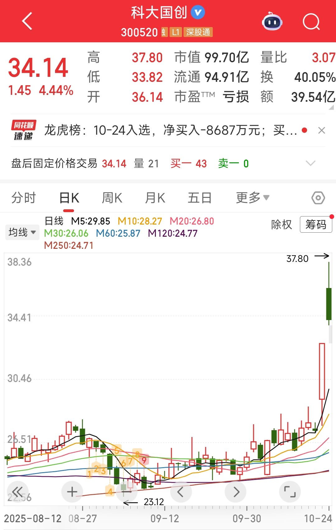 #社区牛人计划#  $科大国创(SZ300520)$  $海峡创新(SZ300300)$