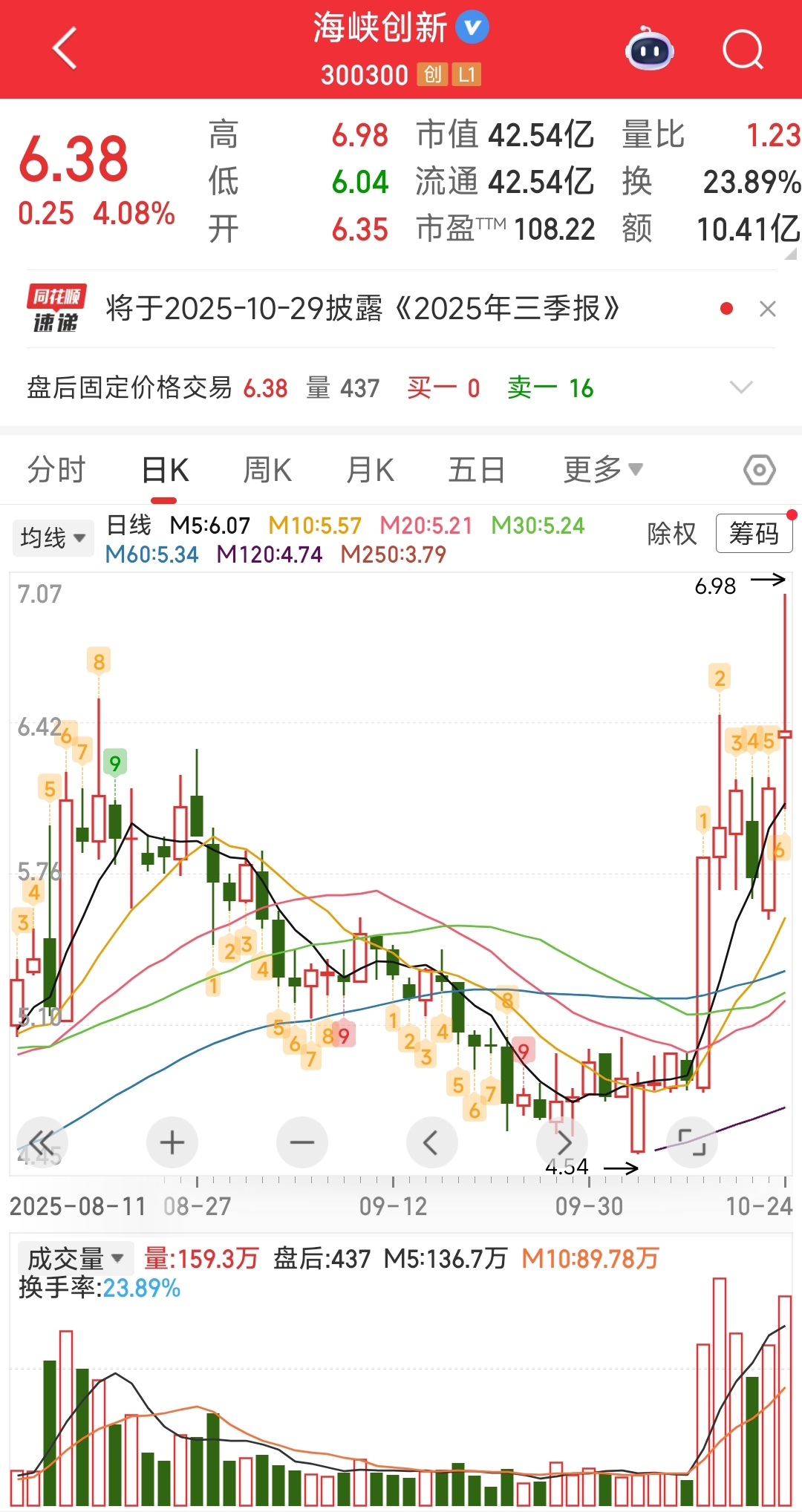 同样在周五(10月24日),海峡创新也走出了“星星点灯”,还叠加了政策buff: