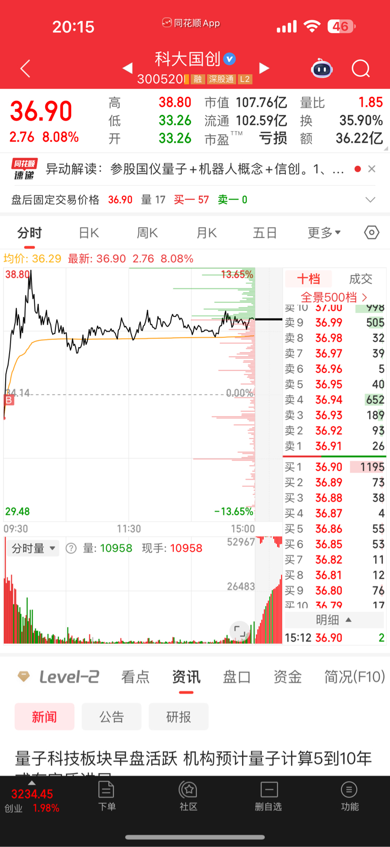 $科大国创(SZ300520)$ 竞价看到-7直接上了 一看成交-2