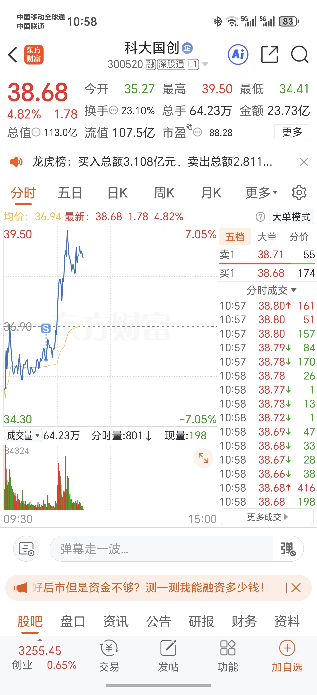 $科大国创(SZ300520)$ 谢谢我吧,我走了才拉的。