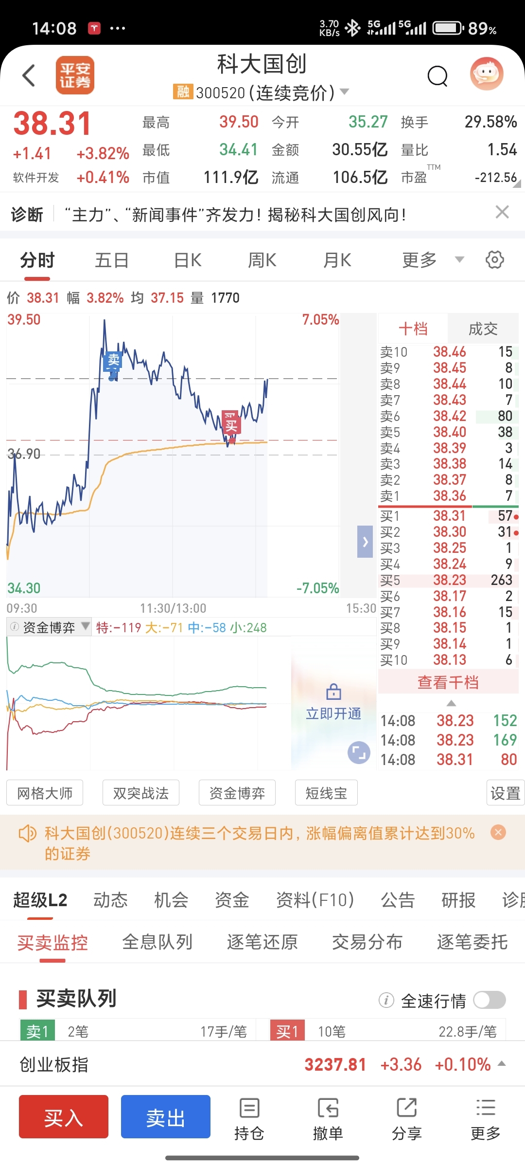 $科大国创(SZ300520)$ 上午120万卖掉后,忍不住手痒买了$春晖智控(SZ300943)$  ,现在又忍不住进了40个w买回来,希望明天能放我出去