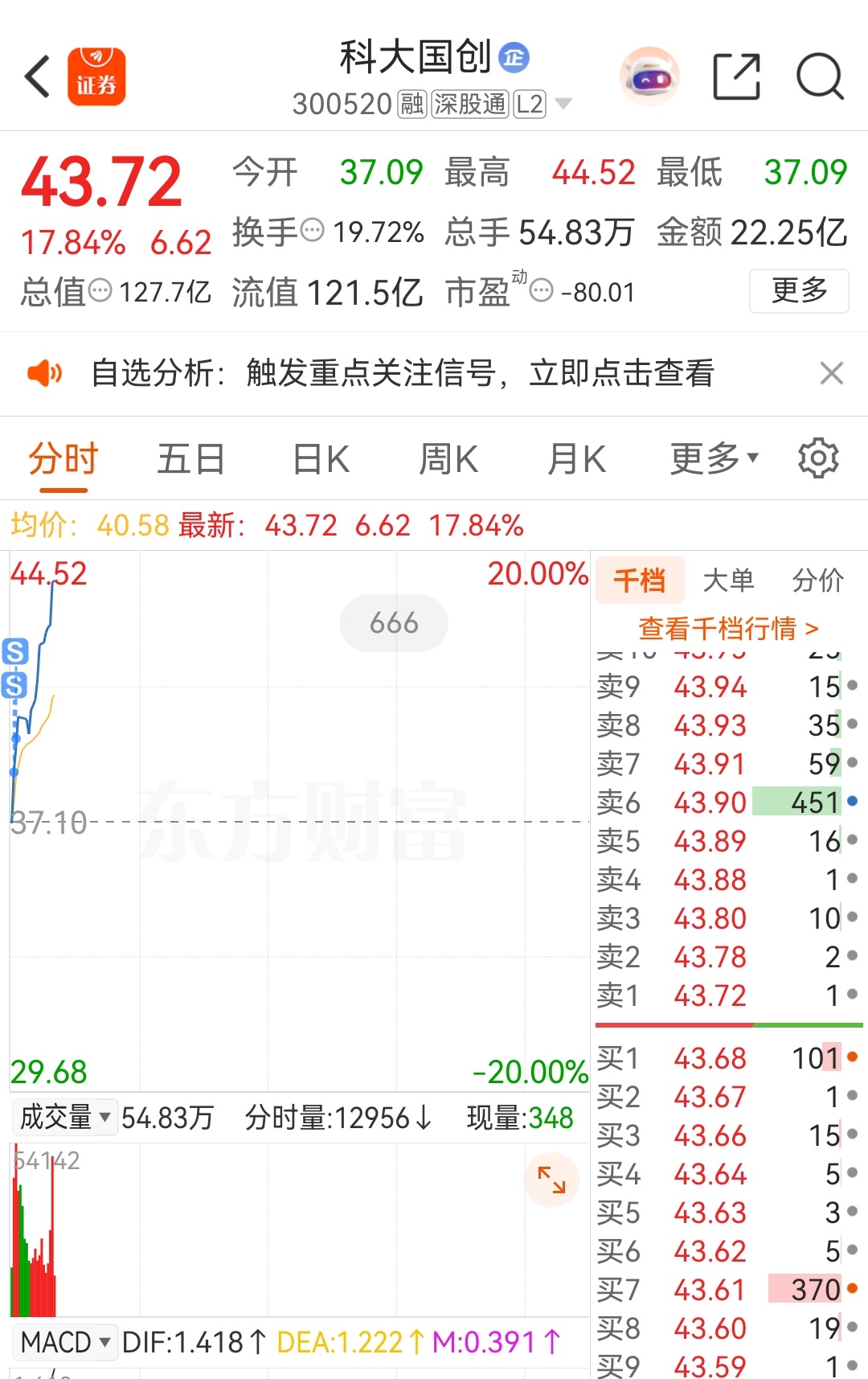 $科大国创(SZ300520)$昨晚的季报不太好,早上第一波冲高就跑了,今天只赚了4%多一点,结果盘中涨停了,又没格局了~