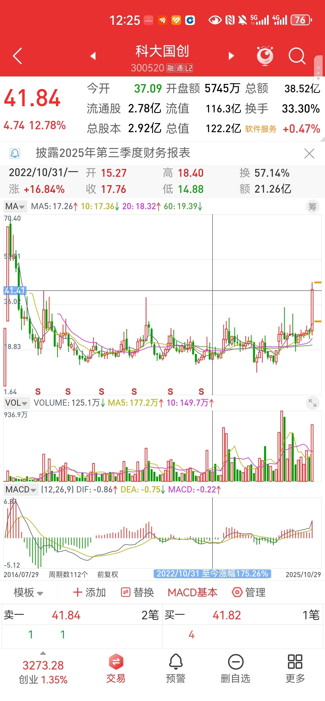 $科大国创(SZ300520)$ 突破8年顶部,放量,又是十五五规划量子科技,大题材,看70前高