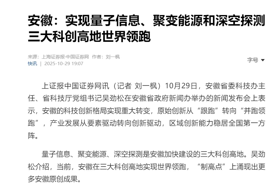 $科大国创(SZ300520)$ $国盾量子(SH688027)$ 安徽,量子科技领先的底气应该就是中科大了,对应的就是科大和国盾了。$神州信息(SZ000555)$