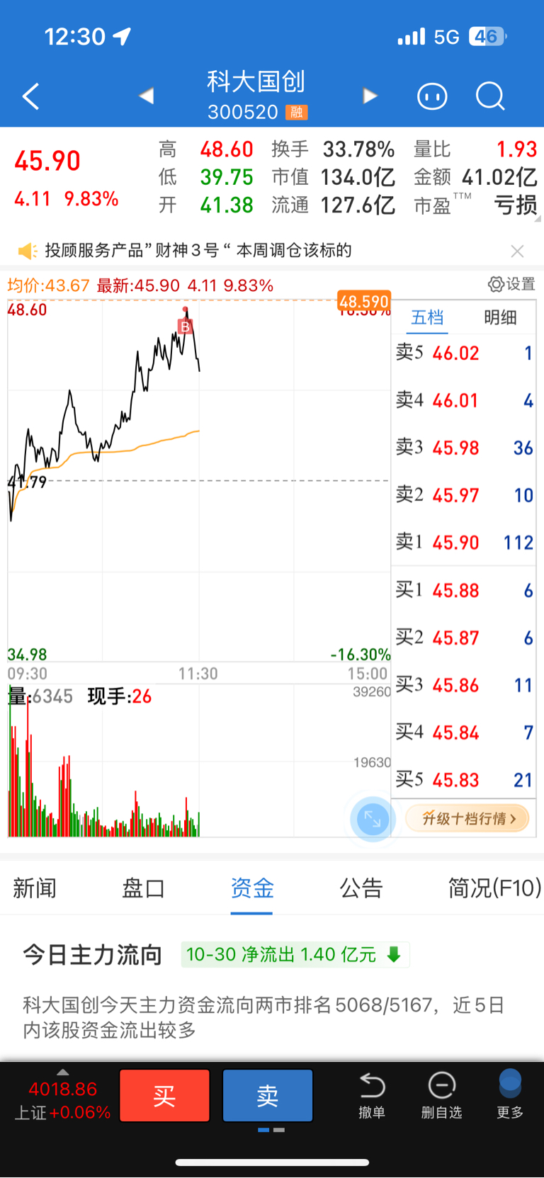 $科大国创(SZ300520)$ 今天收盘-2%