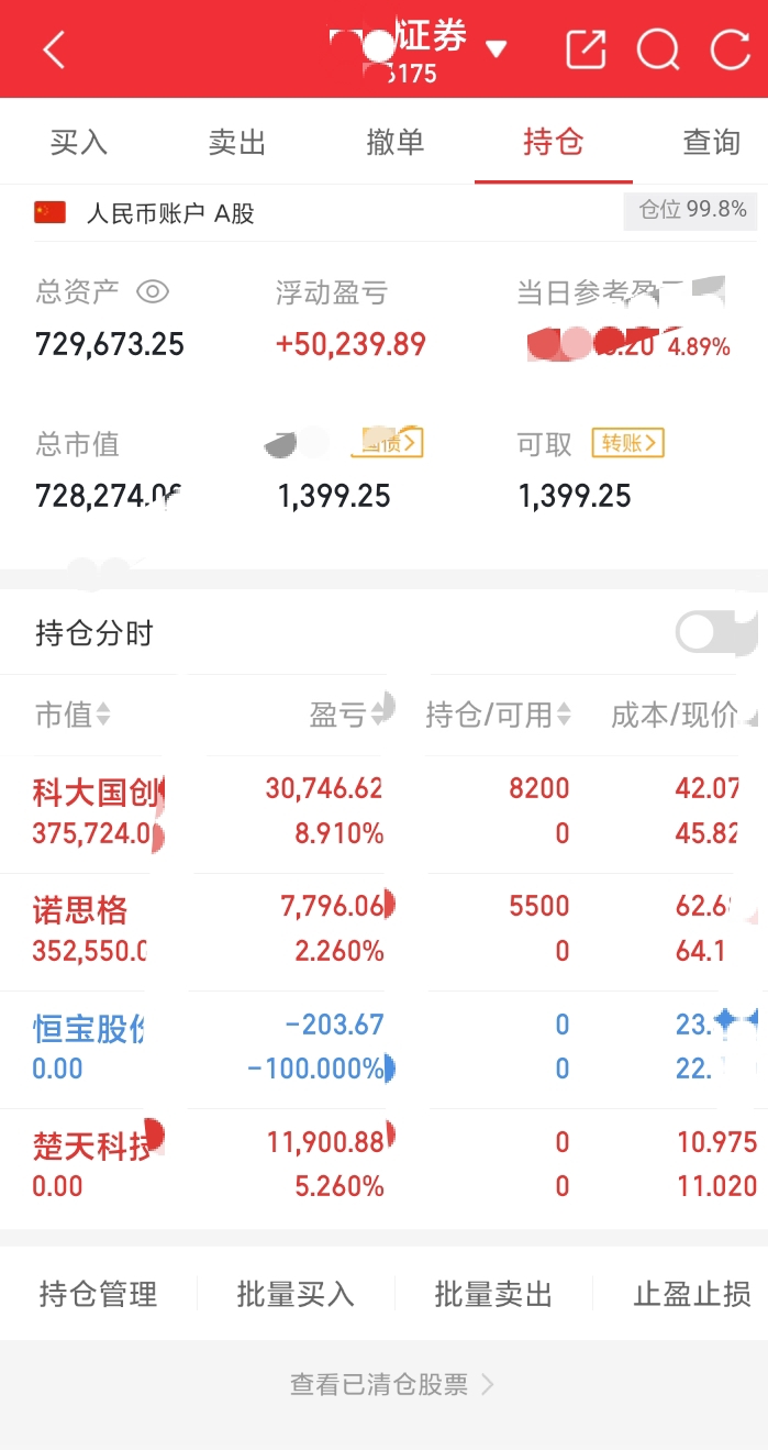 止盈楚天科技,锁定收益;止损恒宝股份,及时离场控风险。