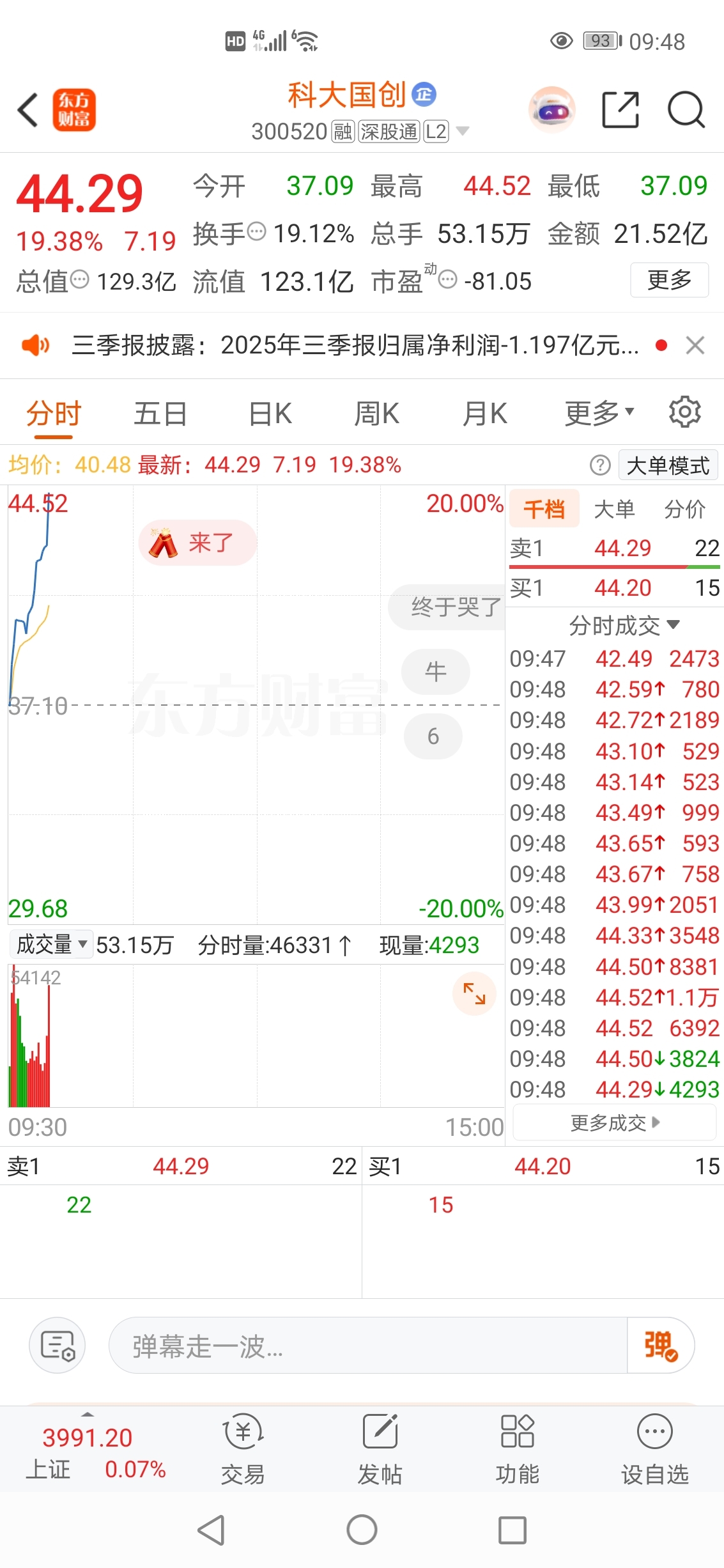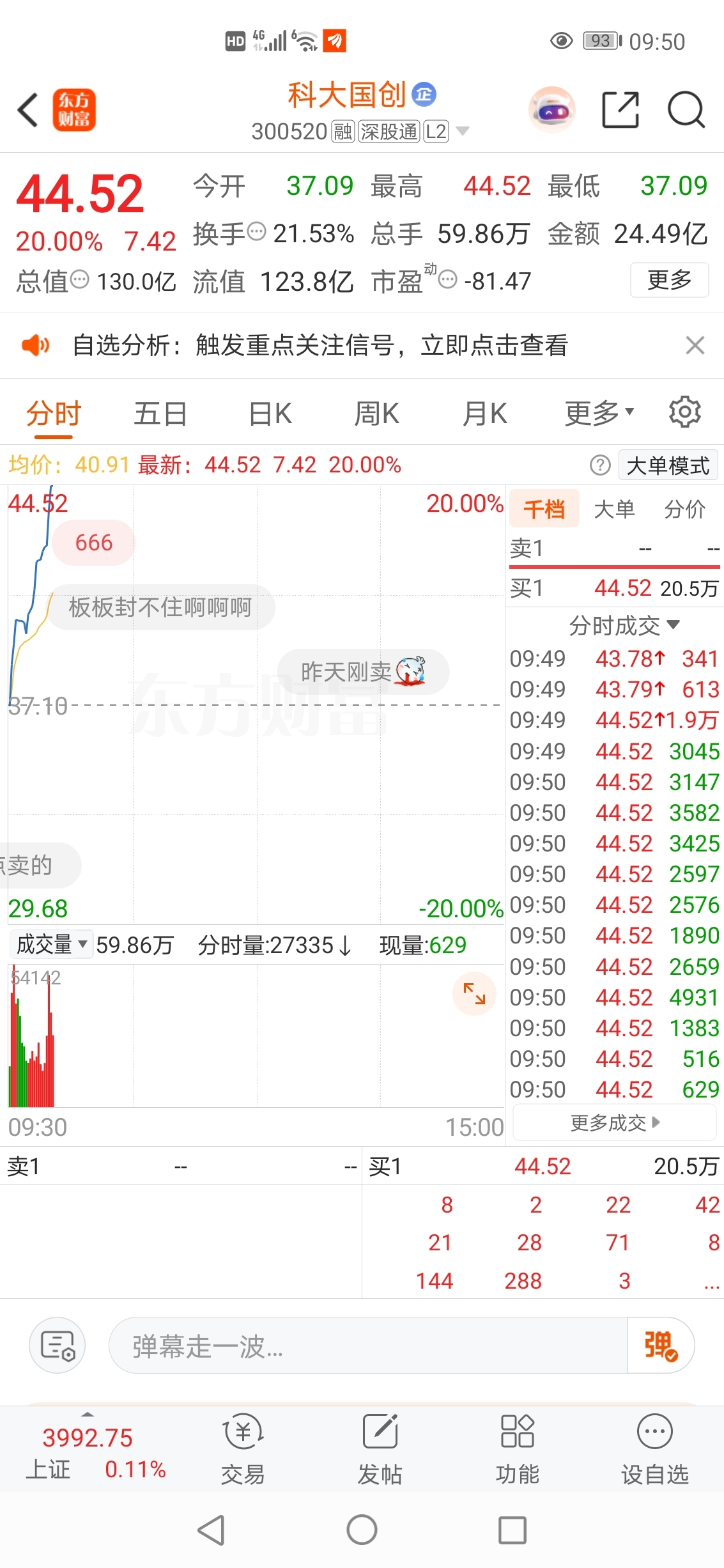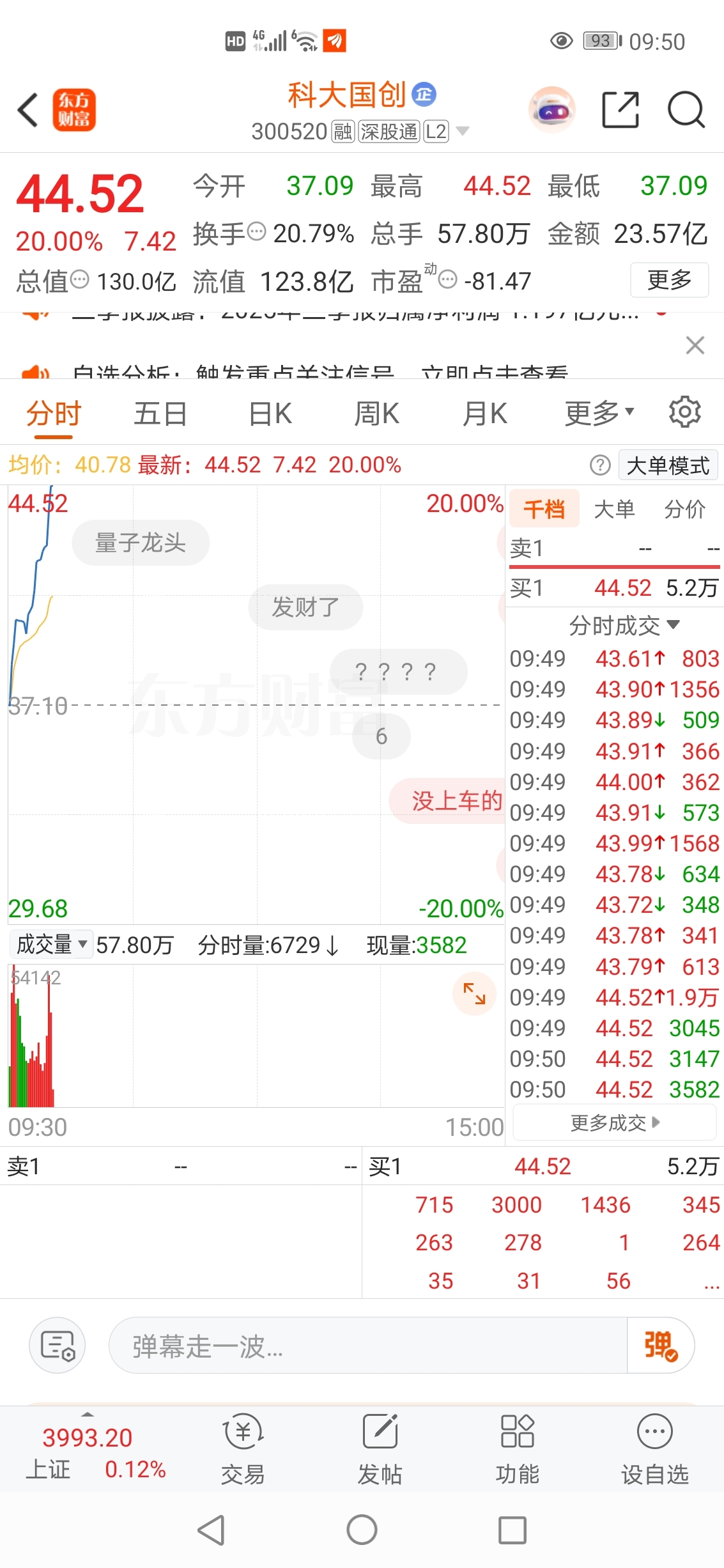 2025年10月29日,记录科大国创封20CM涨停板的精彩瞬间。