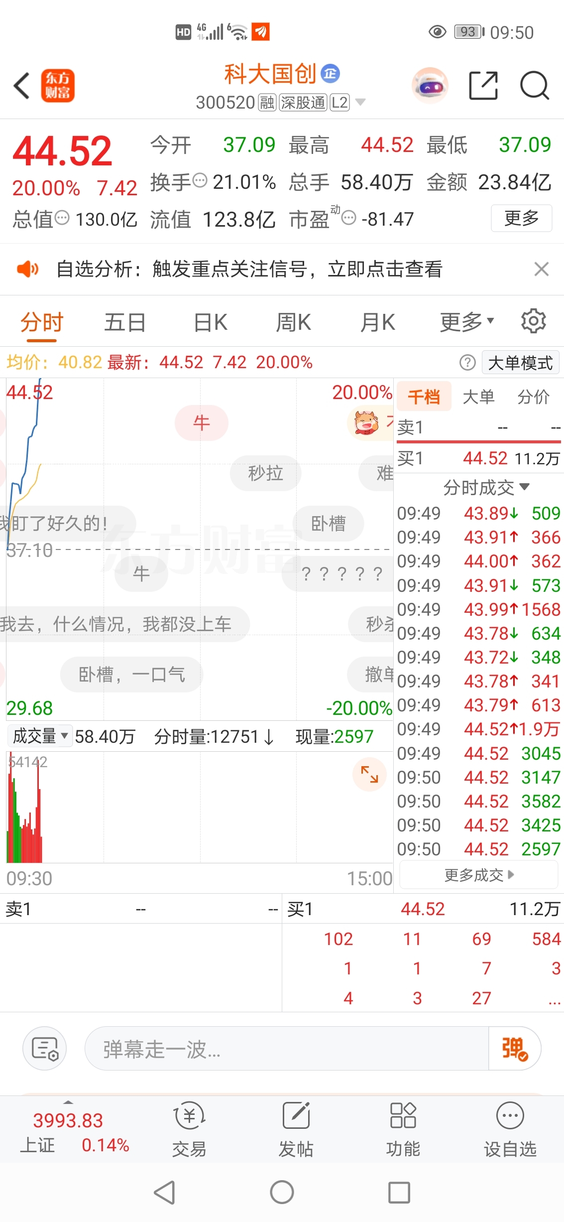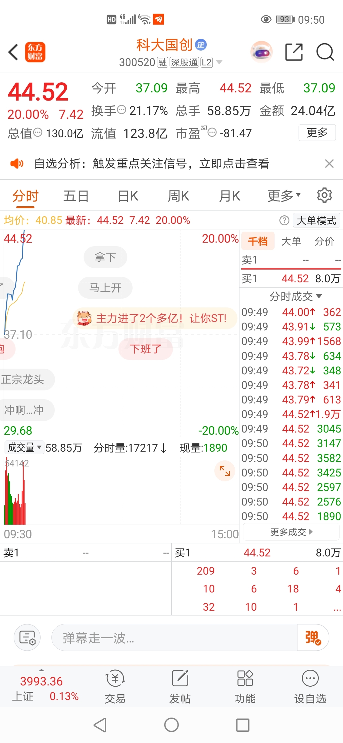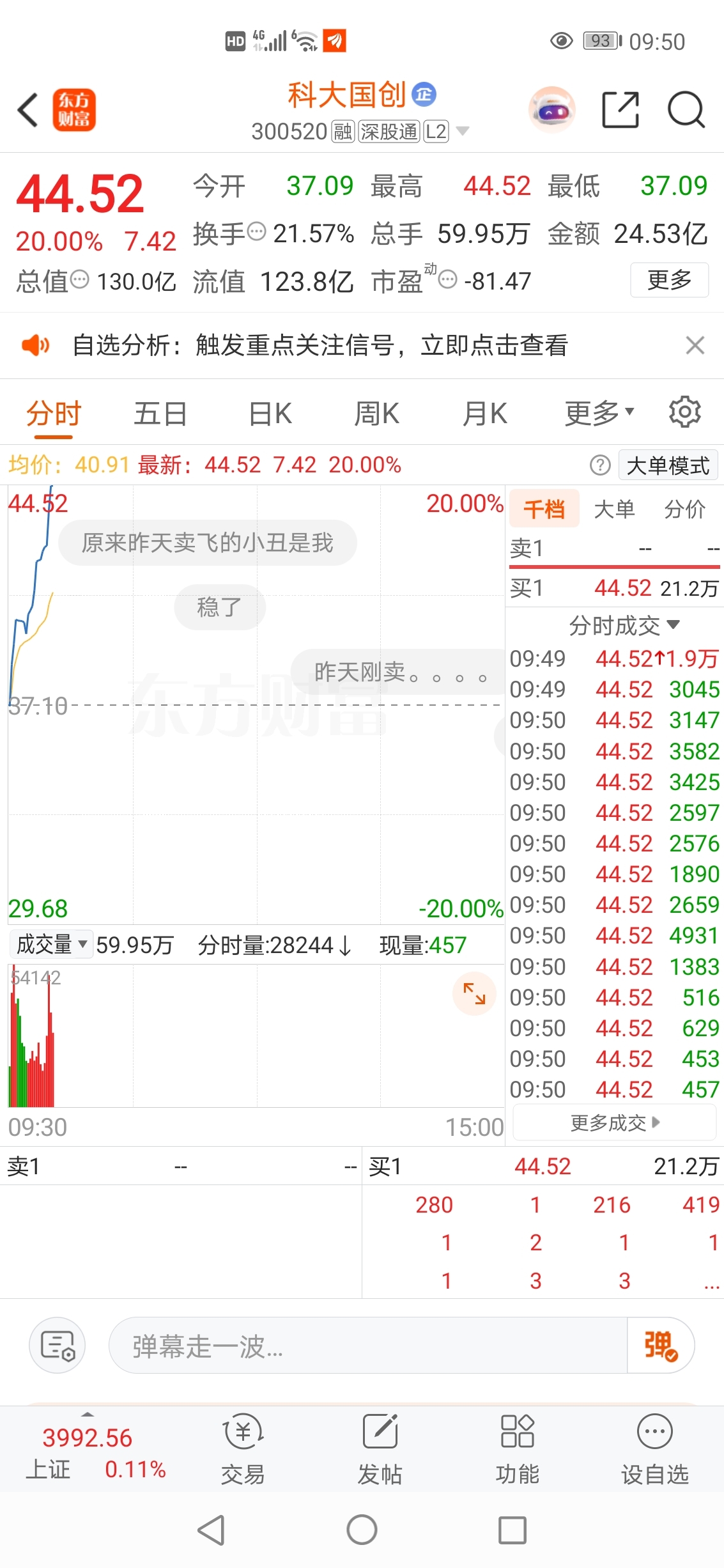 2025年10月29日,记录科大国创封20CM涨停板的精彩瞬间。