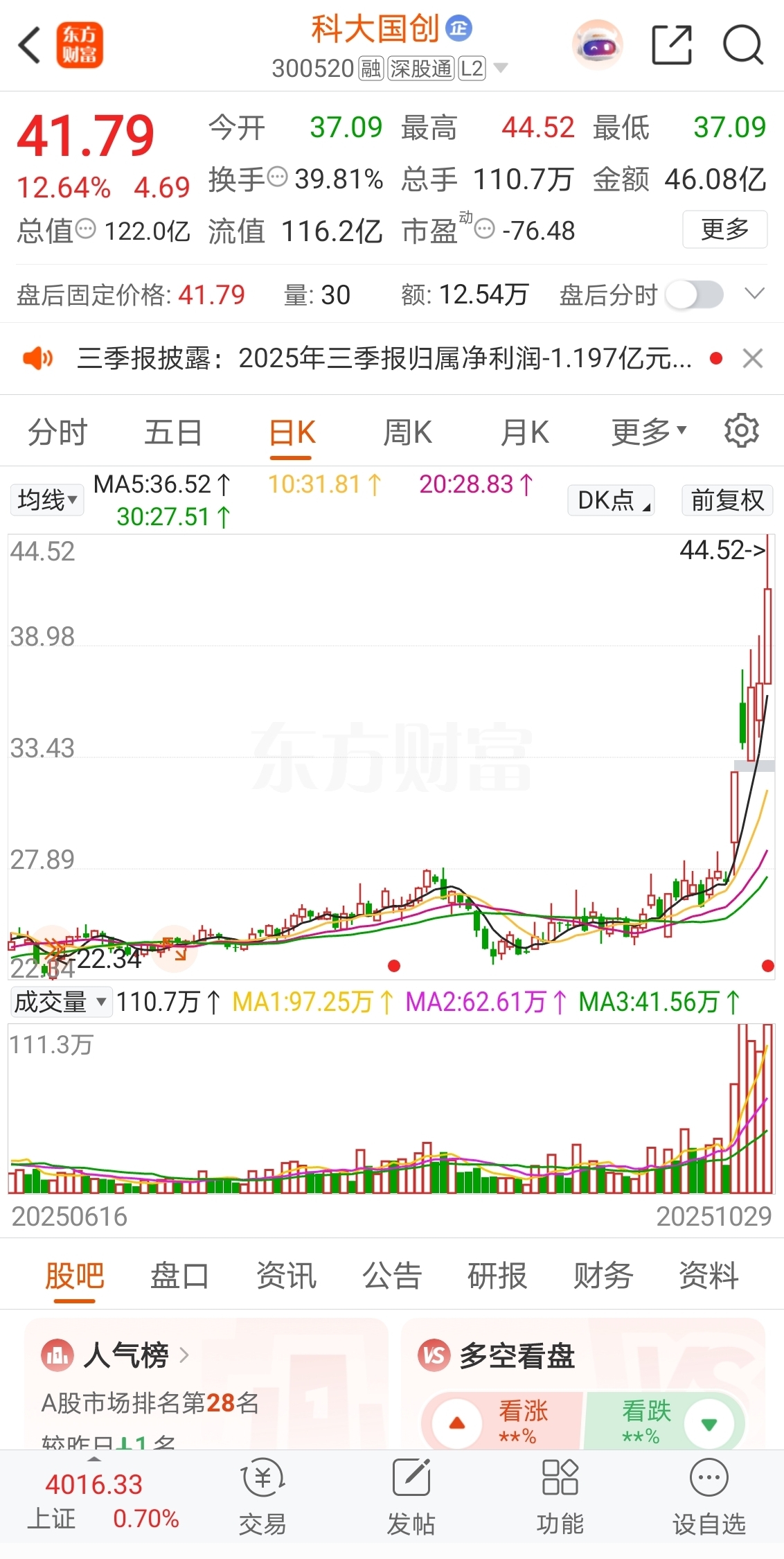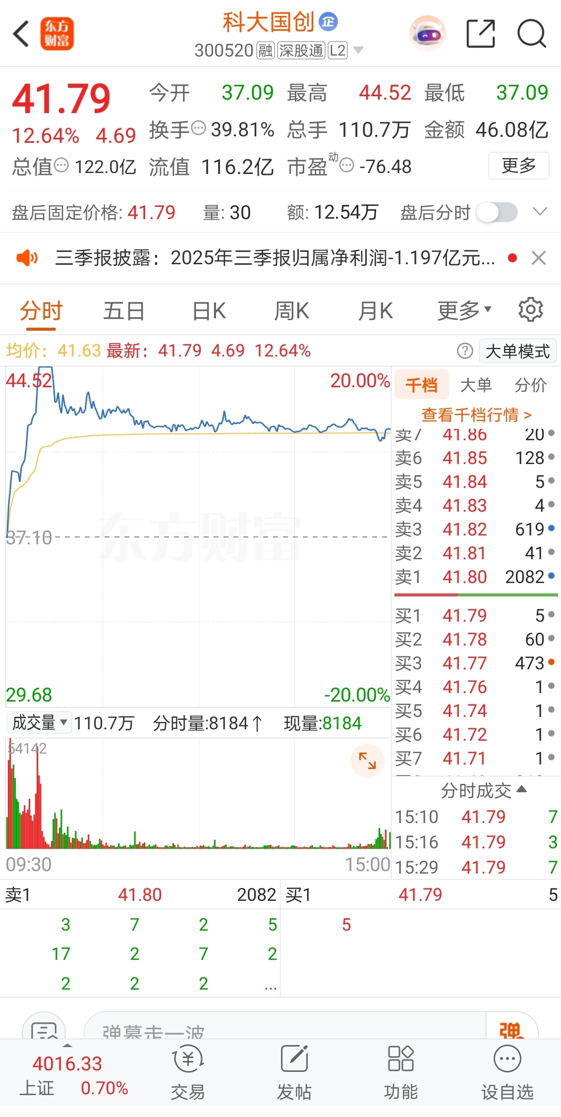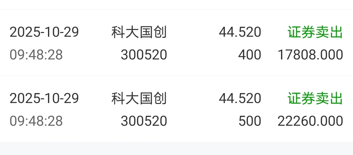 2025-10-29选择在20CM涨停板价格44.52元卖出。