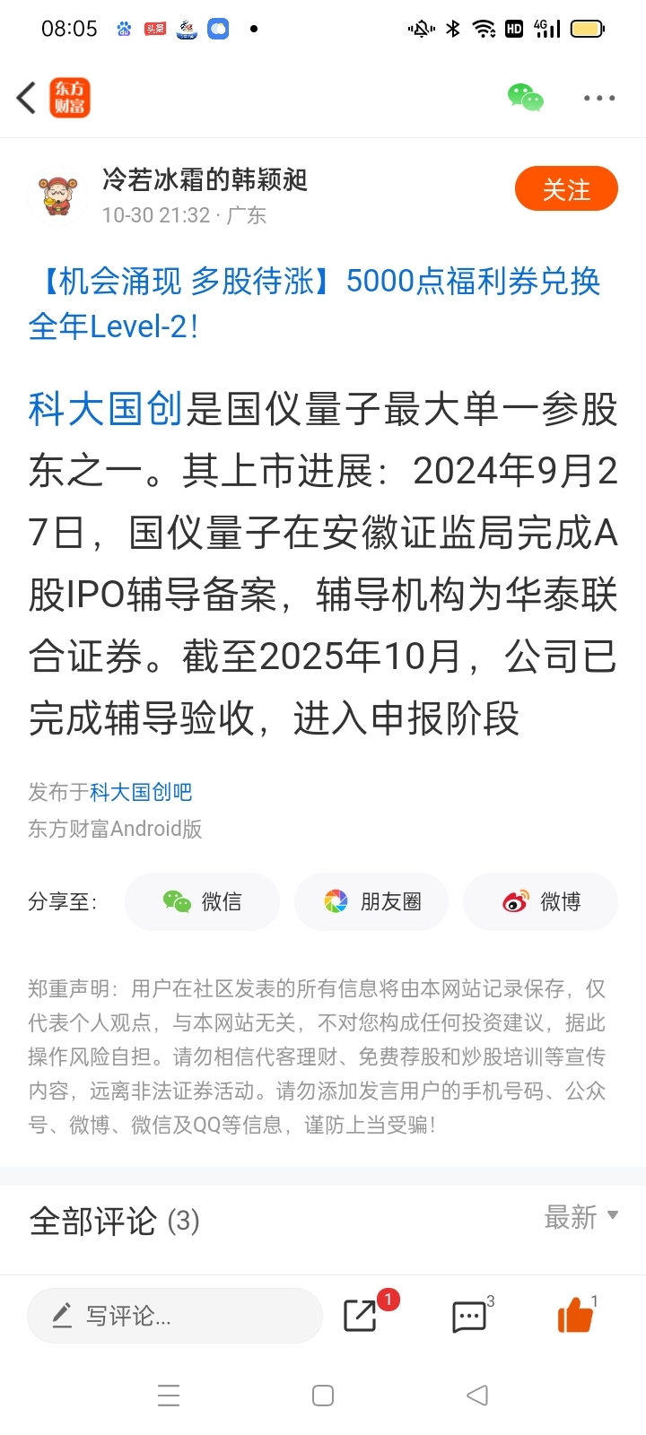 温馨提示: 1.根据《证券法》规定,禁止编造、传播虚假信息或者误导性信息,扰乱证券市场;2.用户在本社区发表的所有资料、言论等仅代表个人观点,与本网站立场无关,不对您构成任何投资建议。用户应基于自己的独立判断,自行决定证券投资并承担相应风险。《东方财富社区管理规定》