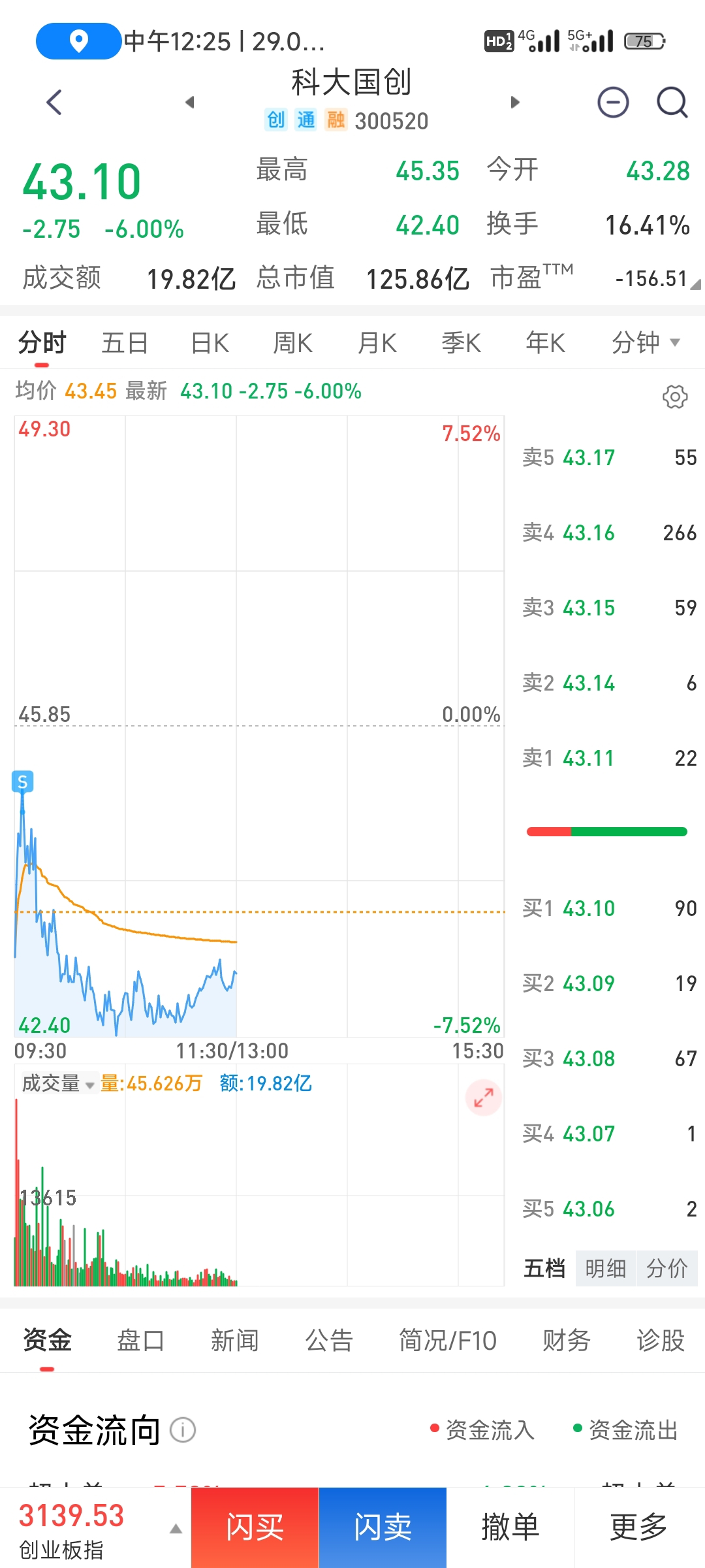 $科大国创(SZ300520)$ 开盘不及预期,赚1个点走了