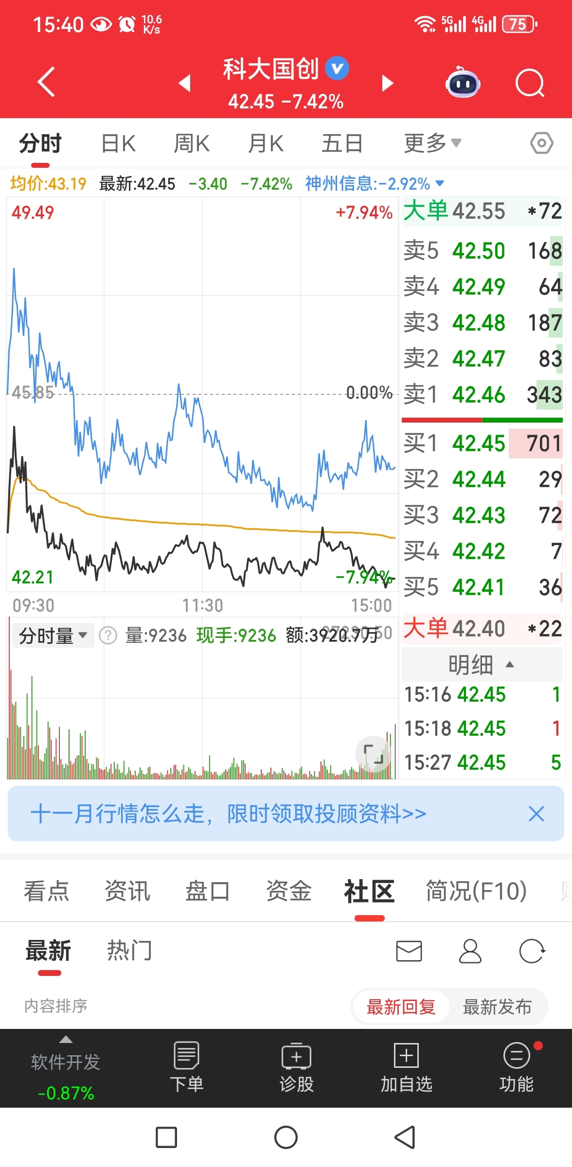 看到神州冲高我还不跑。唉,意害死人。7个点的利润。亏钱走的。再也不碰量子了唉