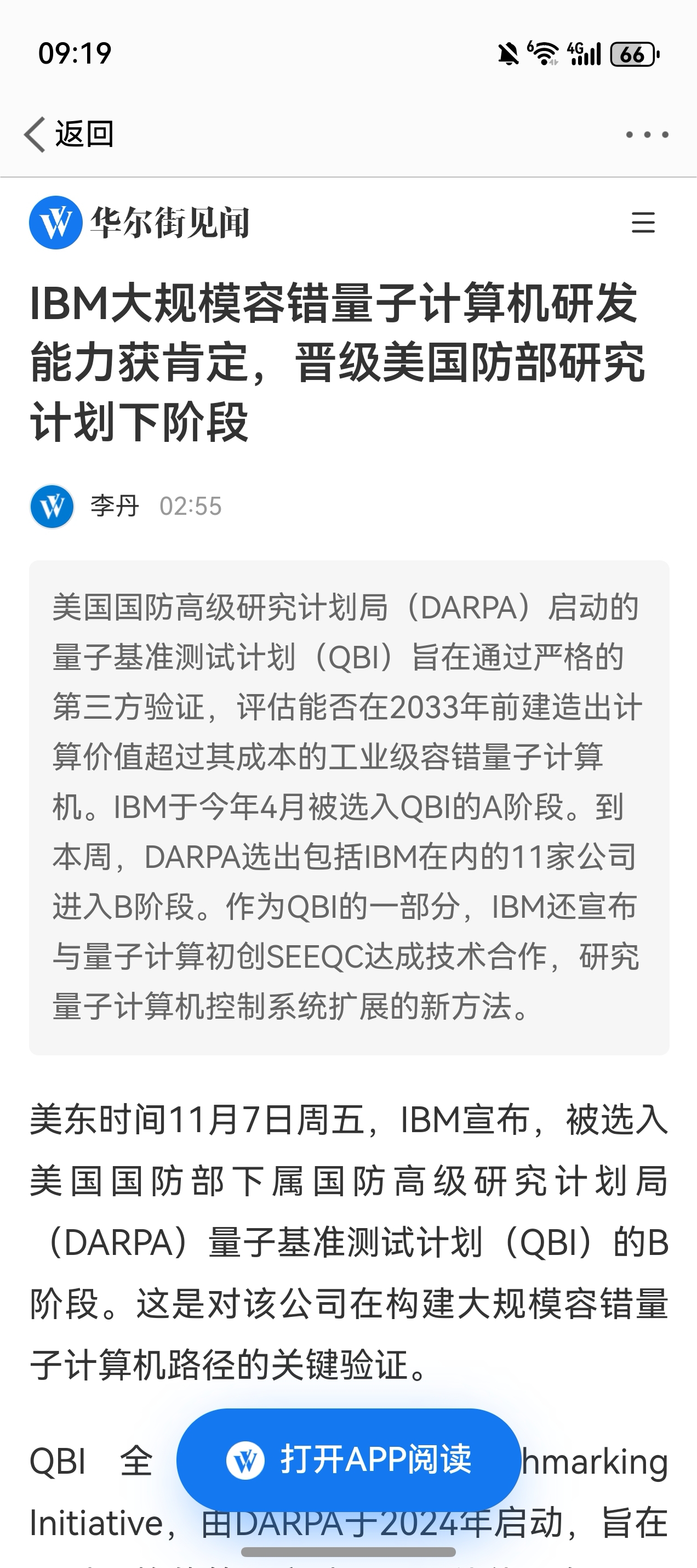 $科大国创(SZ300520)$ IBM大规模容错量子计算机研发能力获肯定,晋级美国防部研究计划下阶段