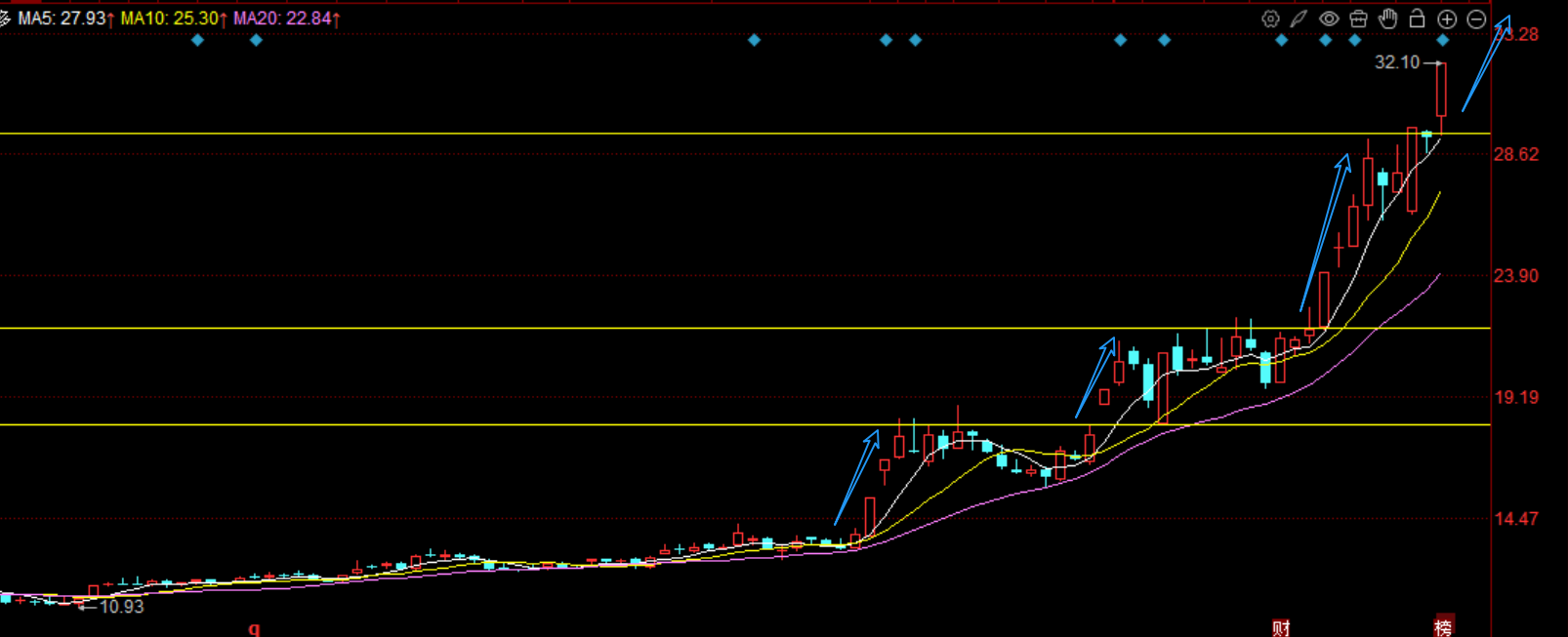 真的是人气之王,锂电池已经是产业趋势了,行业经过两年的亏损之后,控产能取得成效,加上今年储能装机需求大增,储能电芯的需求直接带动锂电池板块需求增加,进而带动六氟磷酸锂中秋节之后一直涨价,甚至电解液,上游的黄磷也持续涨价了。所以这种行业拐点趋势,不是一两天能结束的,标的上,核心就是多氟多,公司主要就是生产电解液,六氟磷酸锂年产5万吨左右,仅次于天赐材料的11万吨,但是走势上,多氟多更加强势,周五的涨停,突破了前期30的压力位,开始走第四波了,今年的持续性非常强,最终到底能涨多少,直接跟踪产品价格就行,只要六氟磷酸锂一直涨价,多氟多就会一直向上,策略上,持股的话就不要动了,这种大趋势不要主观猜顶,等待明显高位滞涨之后才出,如果要介入的话,比较好的入场点是沿着5日线吸筹。