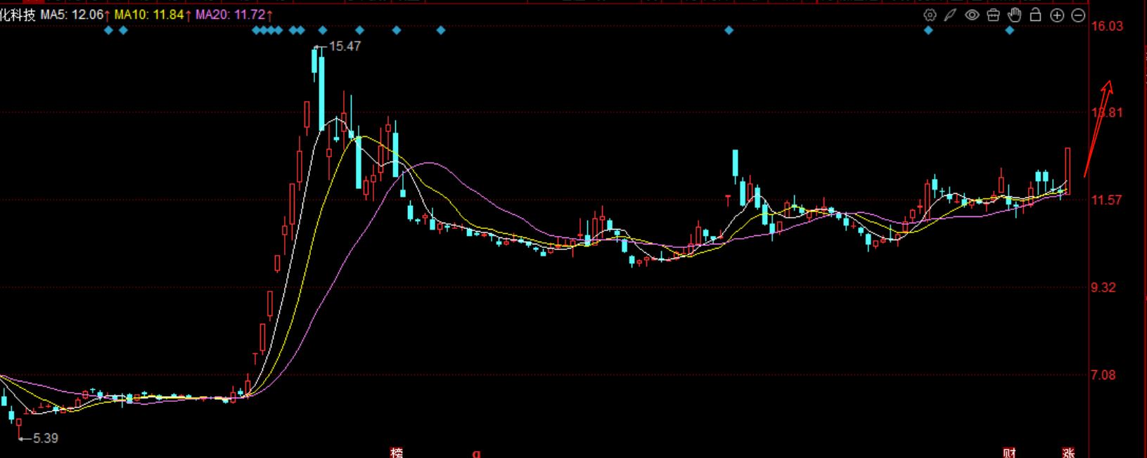 通威业务有水产饲料,高纯晶硅,太阳能电池等等,光伏业务占比超过65%,高纯晶硅及电池市占率连续多年全球第一,组件出货全球前五,也是光伏板块的核心。周五已经冲过板,但是板块没有跟上,所以后续还是开板了,放量到80亿以上,我认为这才是通威涨势的开始,超级放量之后,人气上来了,同时住力也成功拿到筹码,后续大概率是先洗盘,然后逐步走上升趋势了,光伏处于涨势初期,后面预期还高,通威股份留意起来,策略上,今天如果有低开或者水下洗盘的机会,可以介入拿货,持股一个月左右,会有不错的效果。