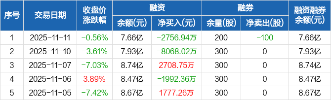 科大国创:融资净偿还2756.94万元,融资余额7.66亿元(11-11)