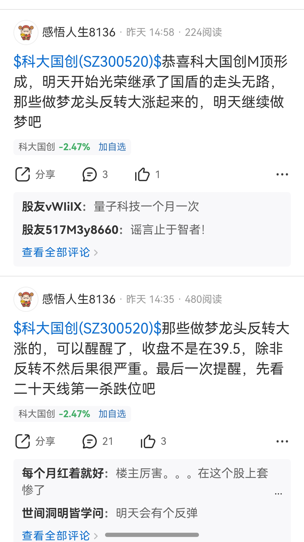 $科大国创(SZ300520)$ 昨天多少人来怼我,骂我,今天怼我骂我的人呢?