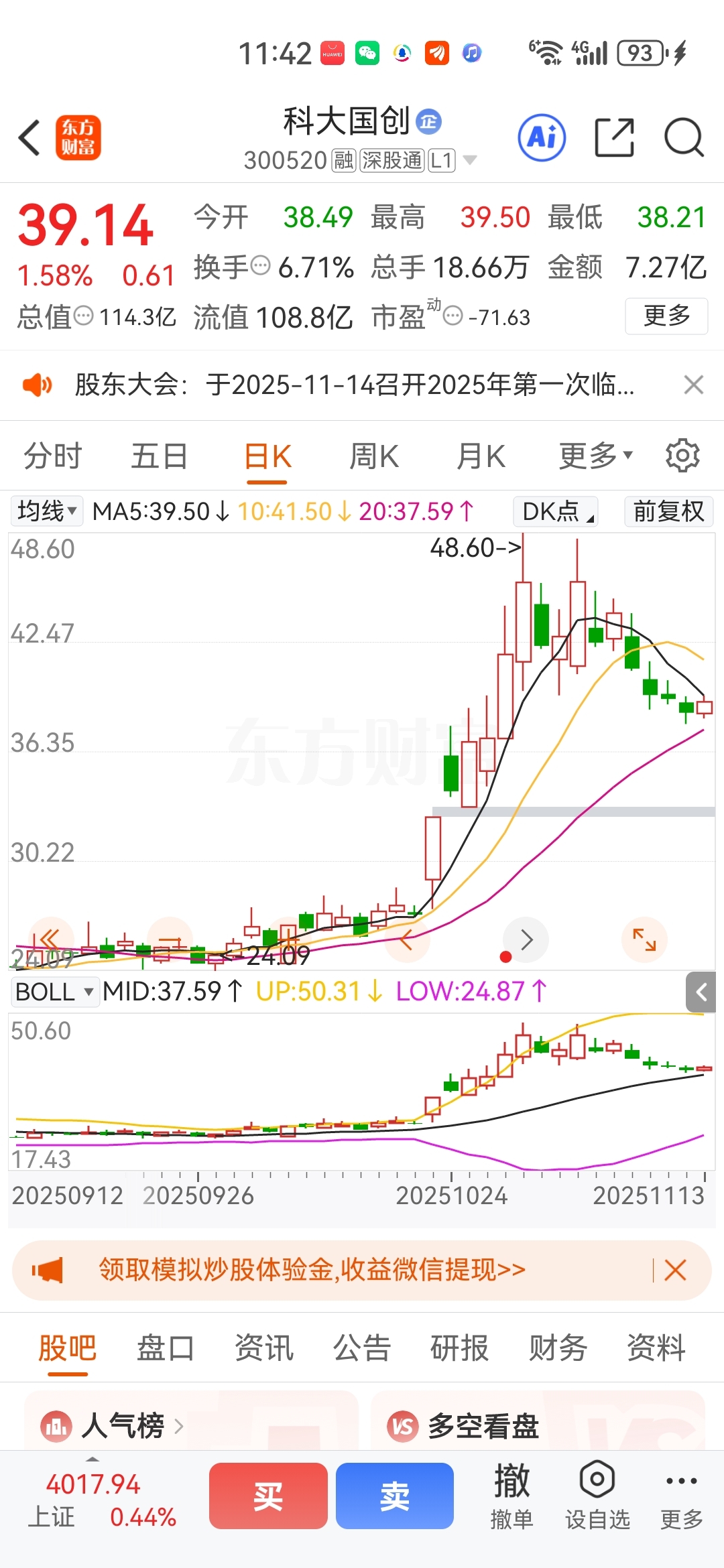$科大国创(SZ300520)$ 昨天买高了,怕不口,下午我赚几百块钱,跑路,