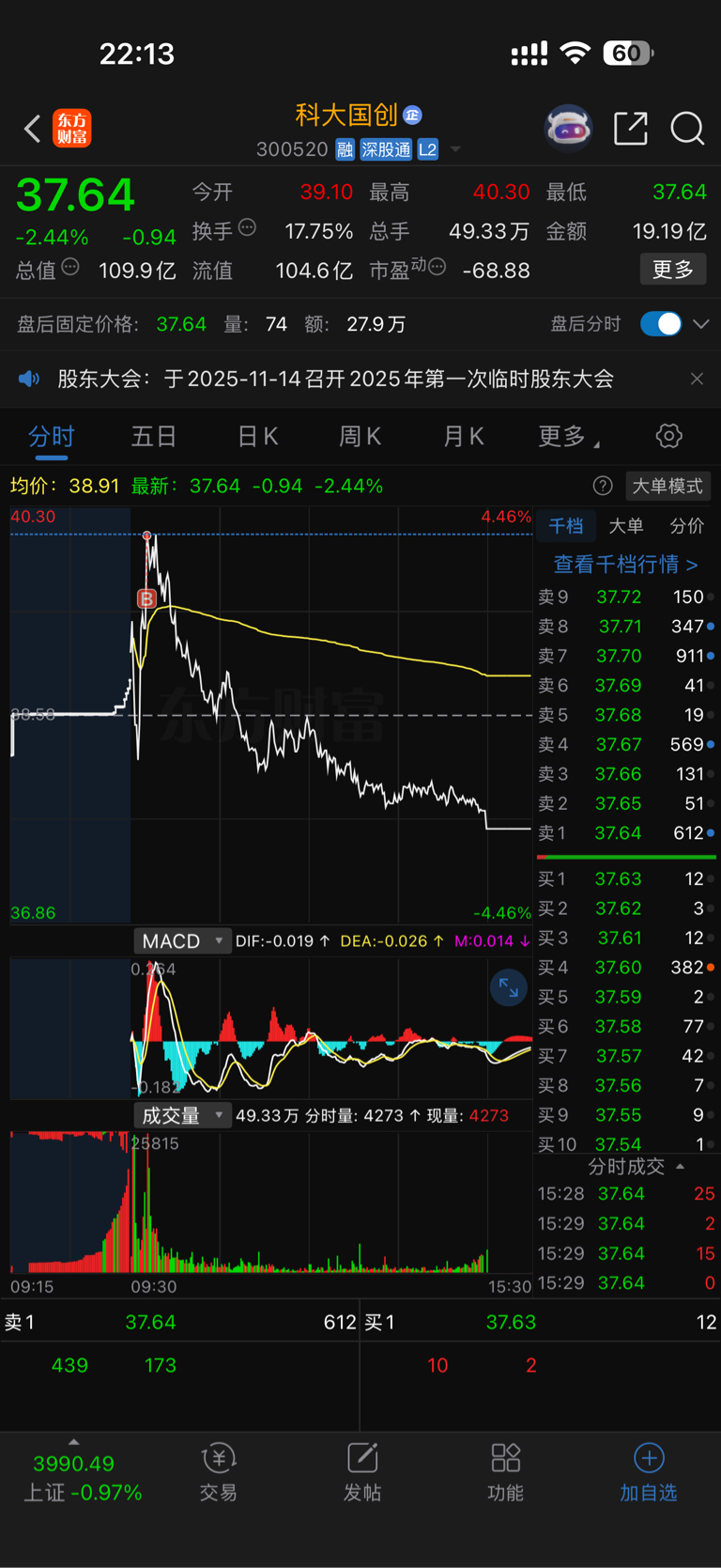 $科大国创(SZ300520)$ 哎,崩溃了,买啥啥跌,都跌了这么多天了,今天还大跌,我承受不住了,礼拜一如果再跌,真的要