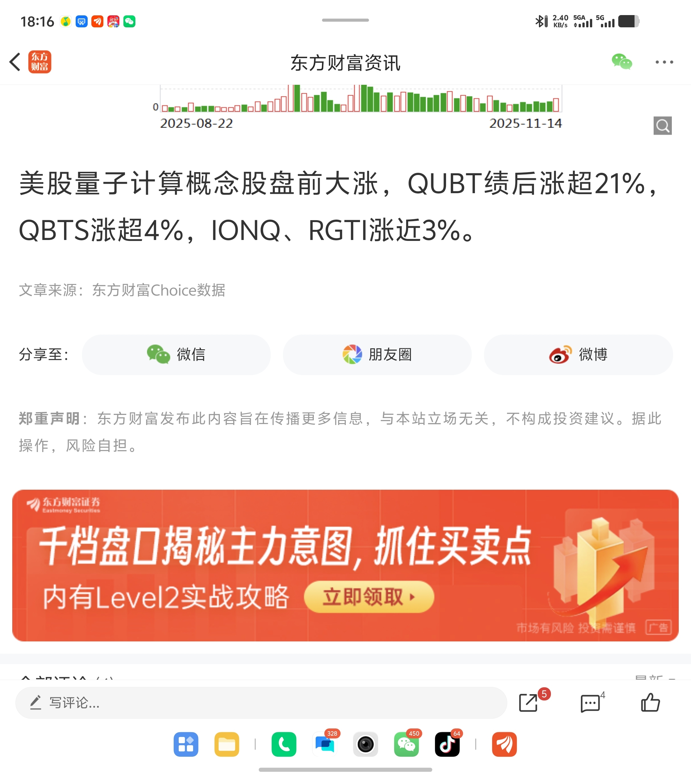 $科大国创(SZ300520)$ 美股量子计算概念股盘前大涨,QUBT绩后涨超21%,QBTS涨超4%,IONQ、RGTI涨近3%……