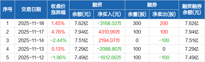 科大国创:融资净偿还3168.02万元,融资余额7.62亿元(11-18)