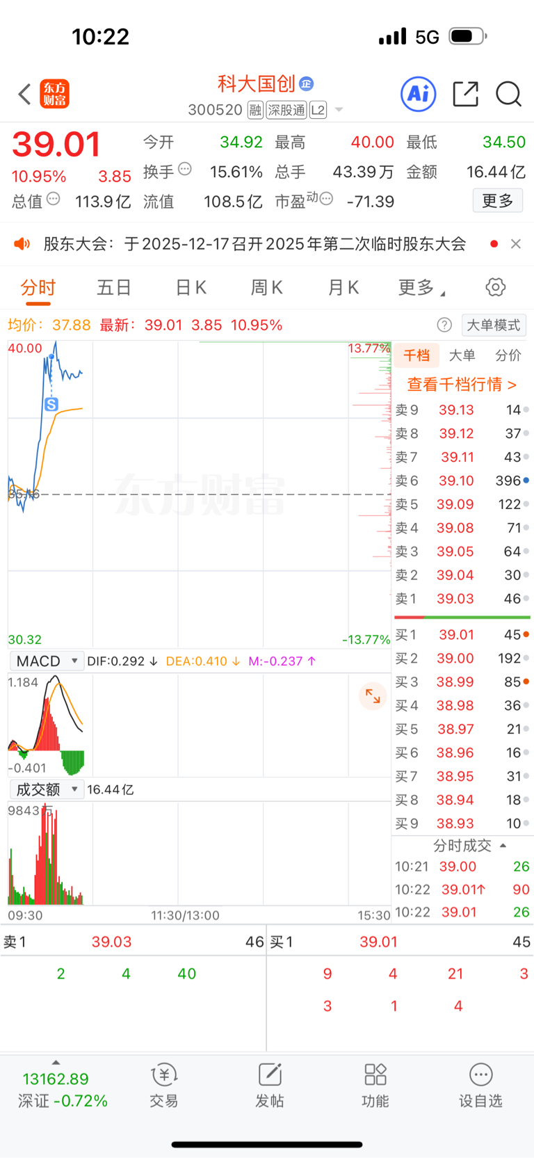$科大国创(SZ300520)$ 感谢主力 留下的兄弟发财。星期五重仓的先跑了