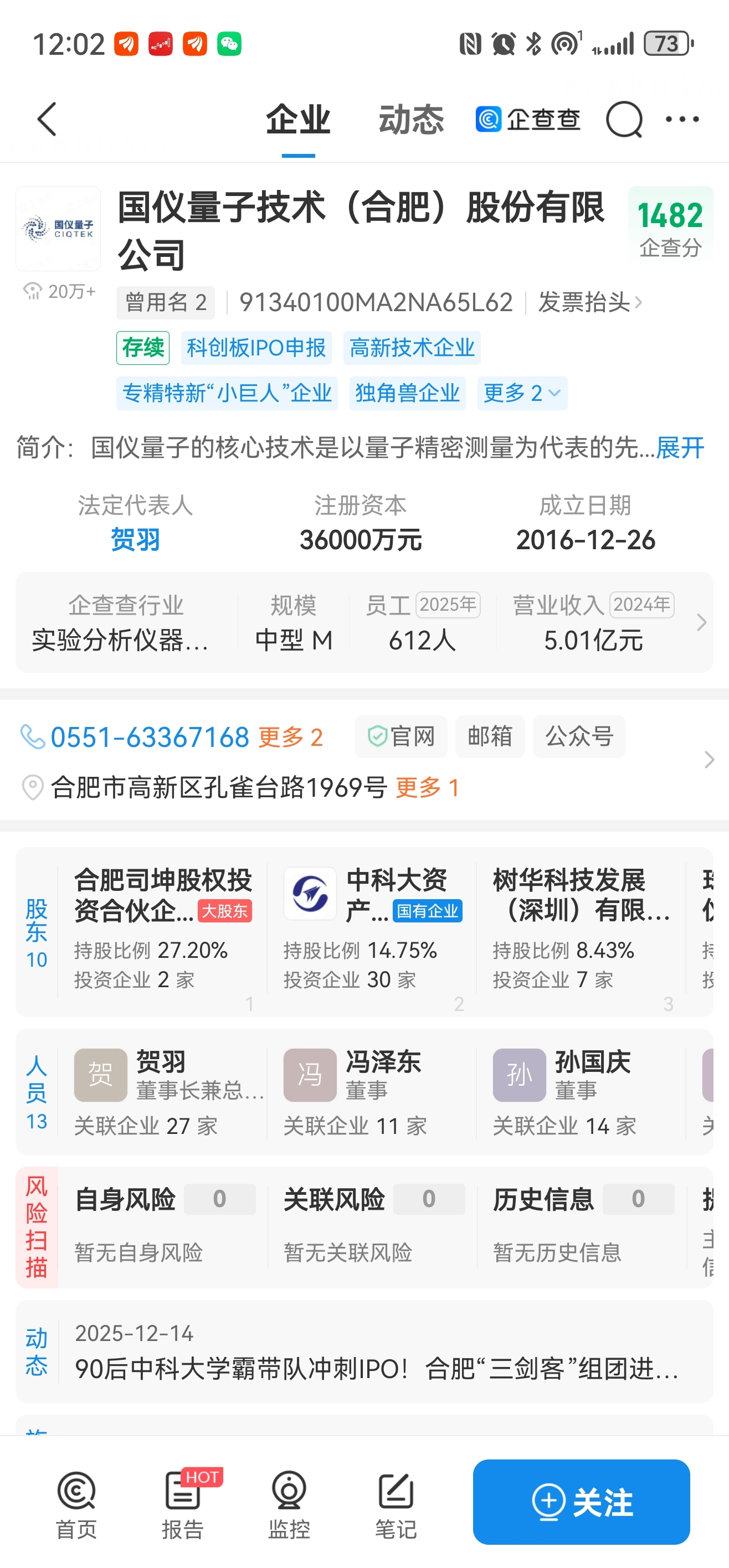 1,持有国仪量子2.75%股份,Ipo受理了,预计上市市值在500-1000亿元以上,那么科大国创投资利润至少25亿元。