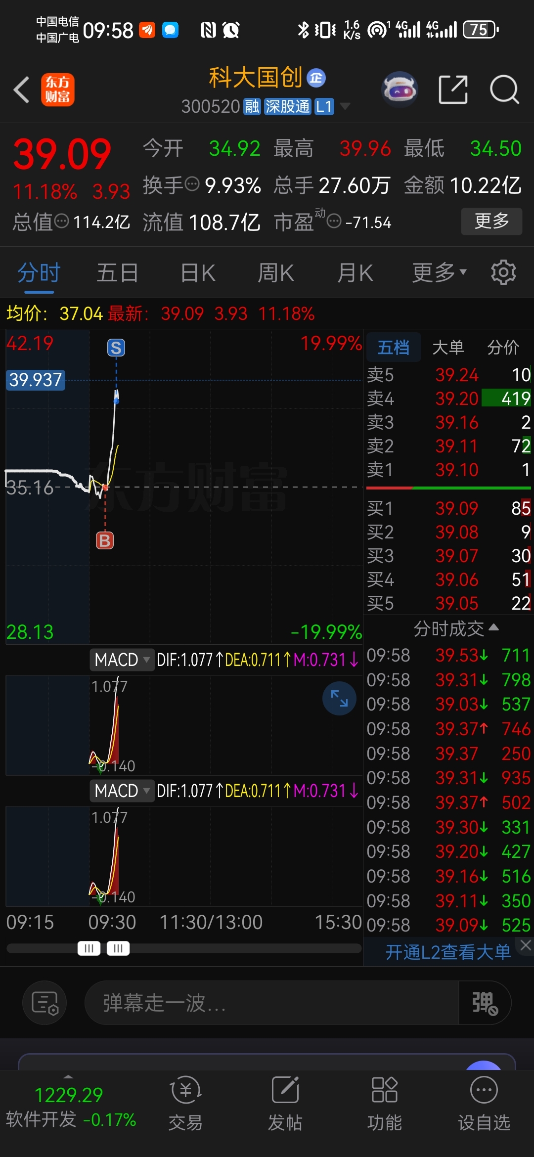 $科大国创(SZ300520)$ 做了10个点的t,爽歪歪!