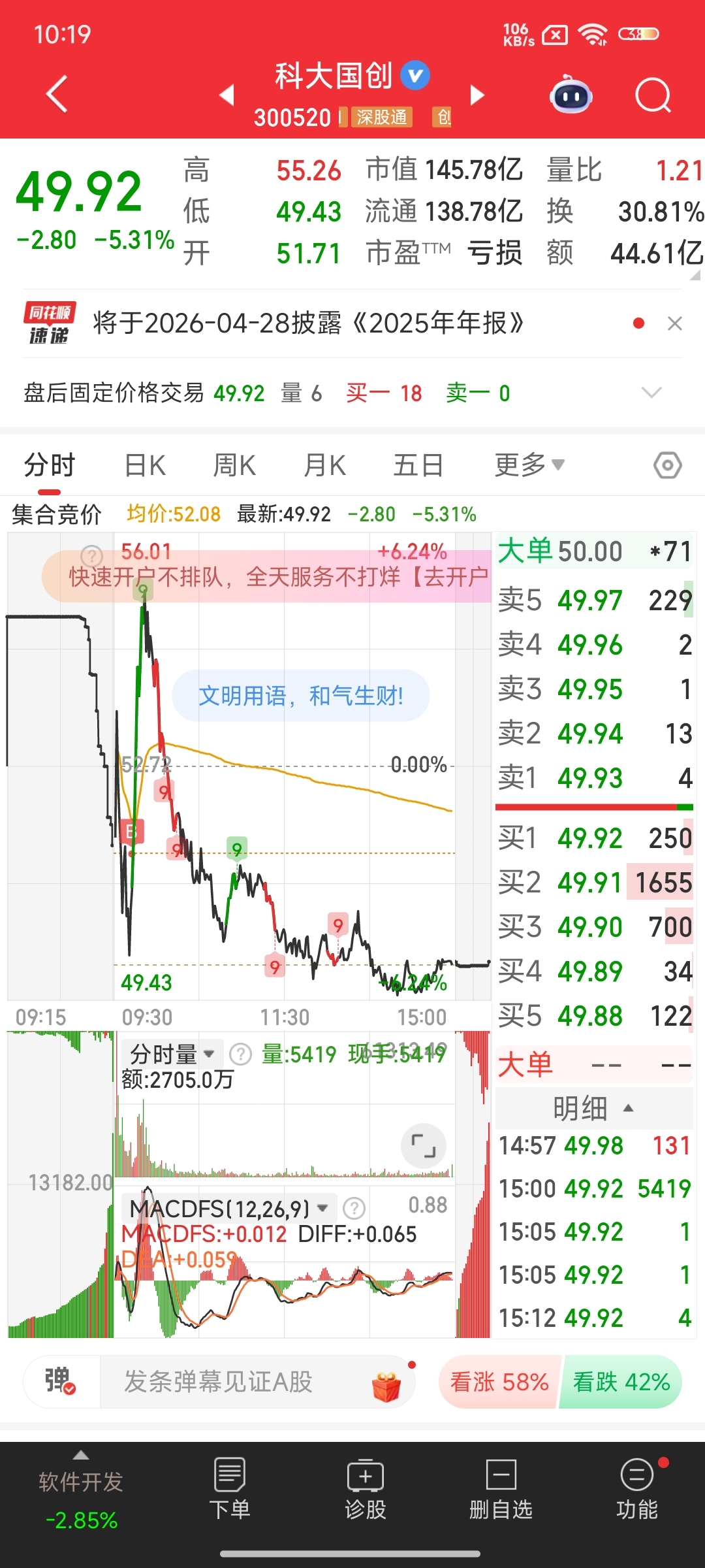 $科大国创(SZ300520)$ 今天套我三个点,明天能不能来个涨停回口血