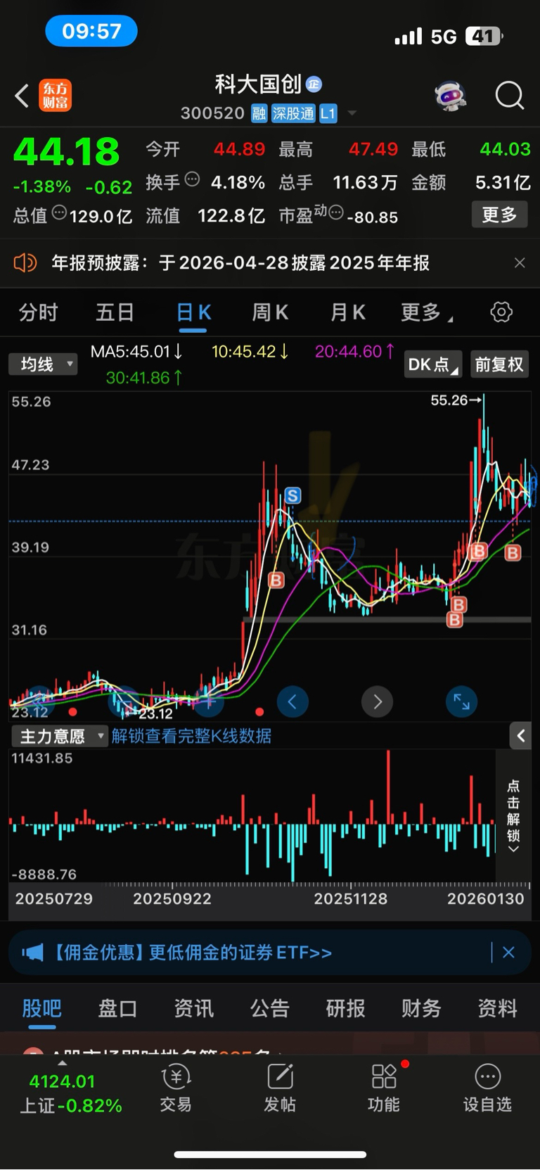 $科大国创(SZ300520)$ 一模一样目测低点还有十个点跌幅左右