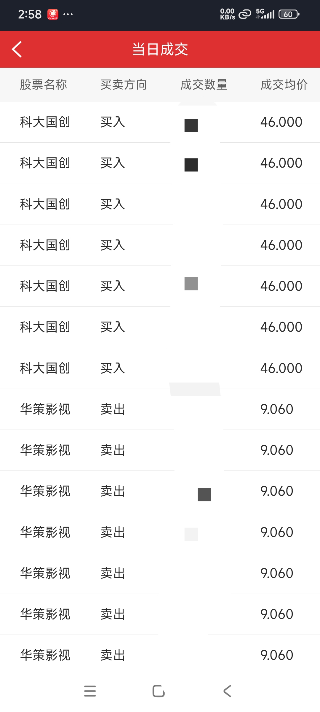 今天9.06元卖出华策影视,46元买入科大国创。