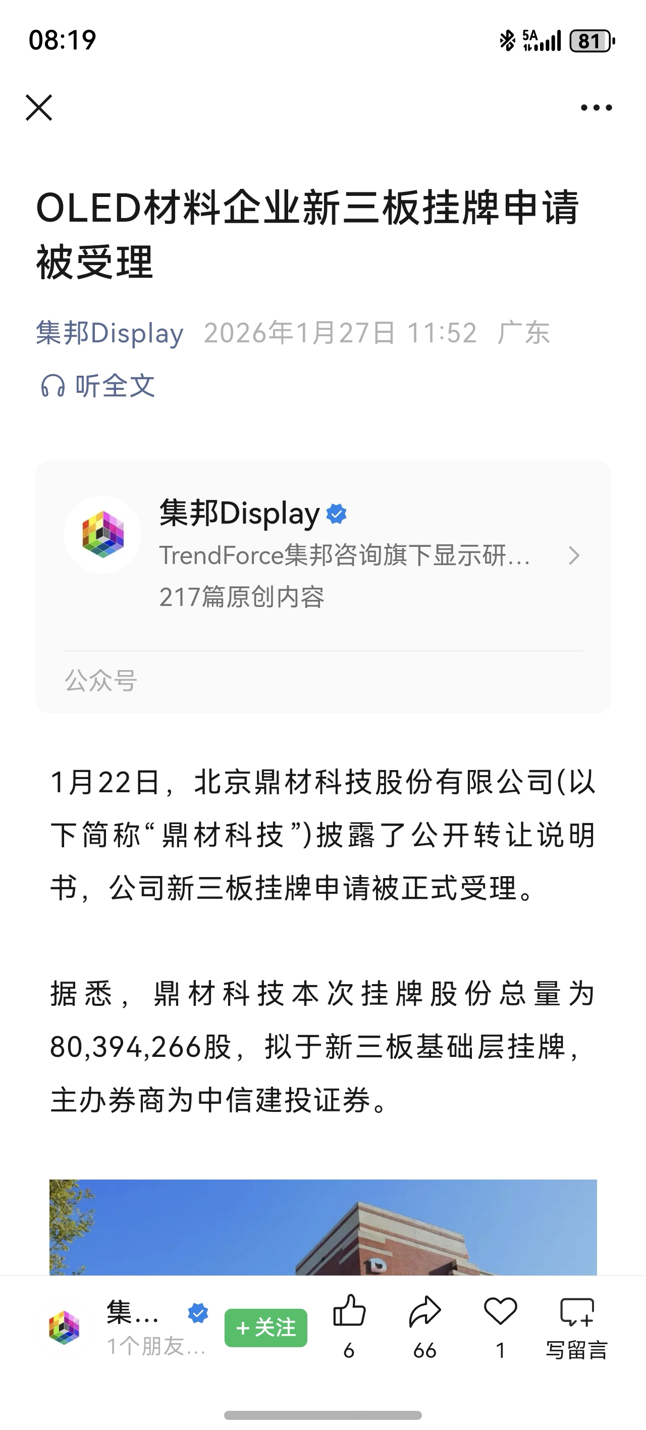 关于鼎材科技申请受理的情况群里没有消息,不正常啊,看新年就发一个,看看是不是故意