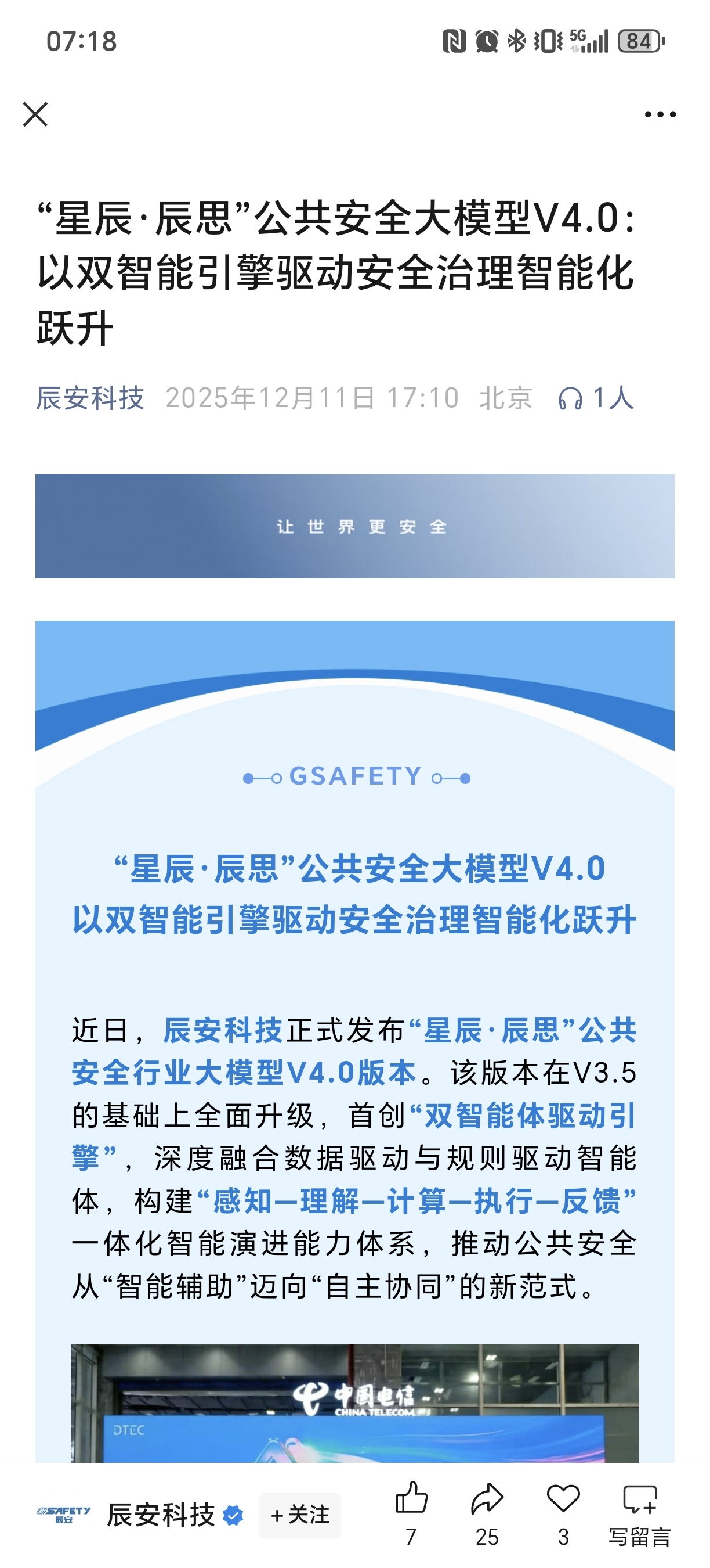 $辰安科技(SZ300523)$ “星辰·辰思”公共安全大模型V4.0