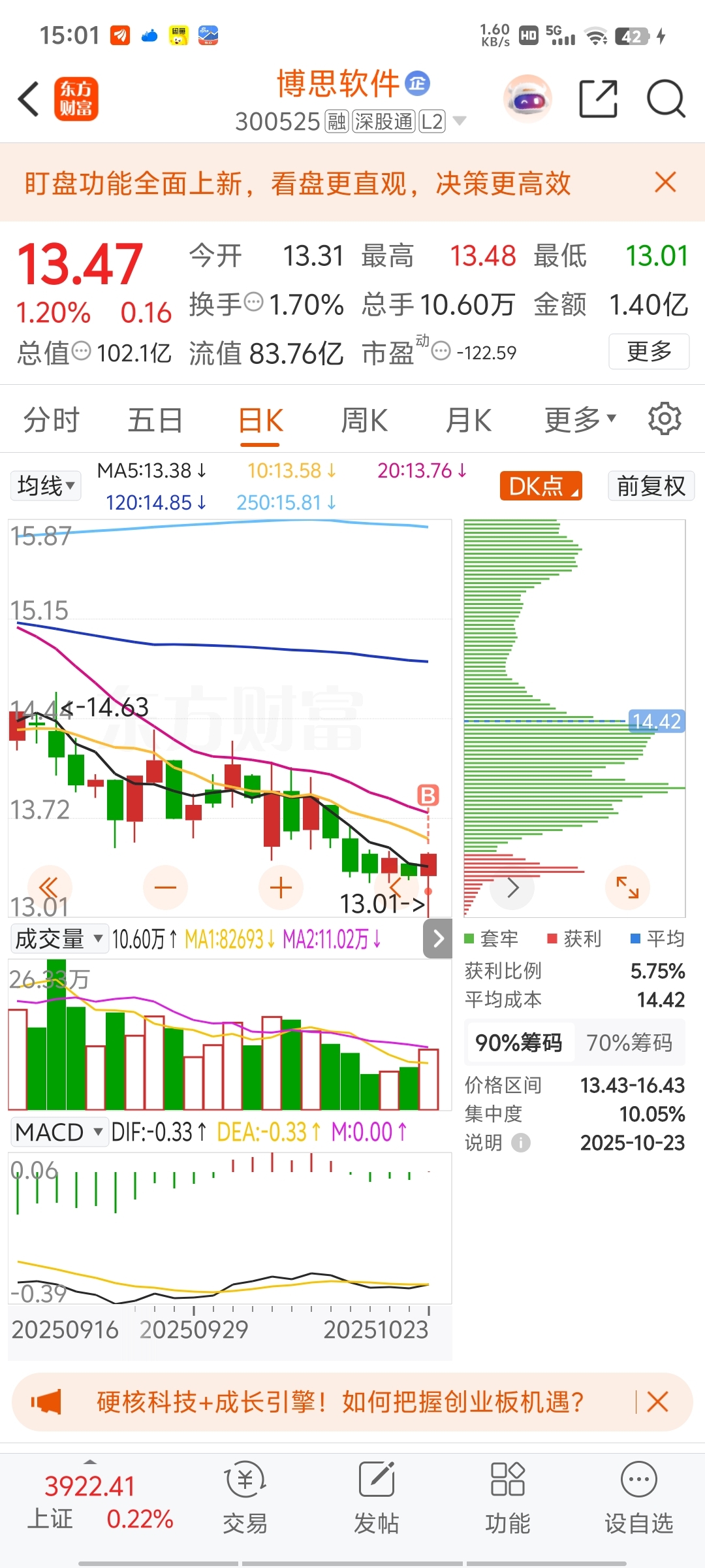 $博思软件(SZ300525)$ 让我逮到了入场机会哈哈,是哪个韭菜给了我筹码