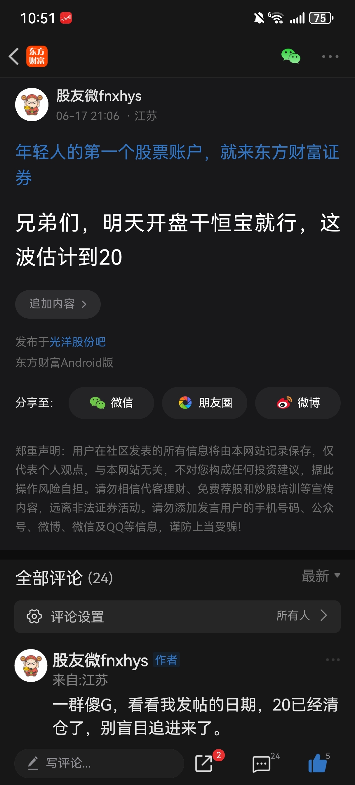 温馨提示: 1.根据《证券法》规定,禁止编造、传播虚假信息或者误导性信息,扰乱证券市场;2.用户在本社区发表的所有资料、言论等仅代表个人观点,与本网站立场无关,不对您构成任何投资建议。用户应基于自己的独立判断,自行决定证券投资并承担相应风险。《东方财富社区管理规定》