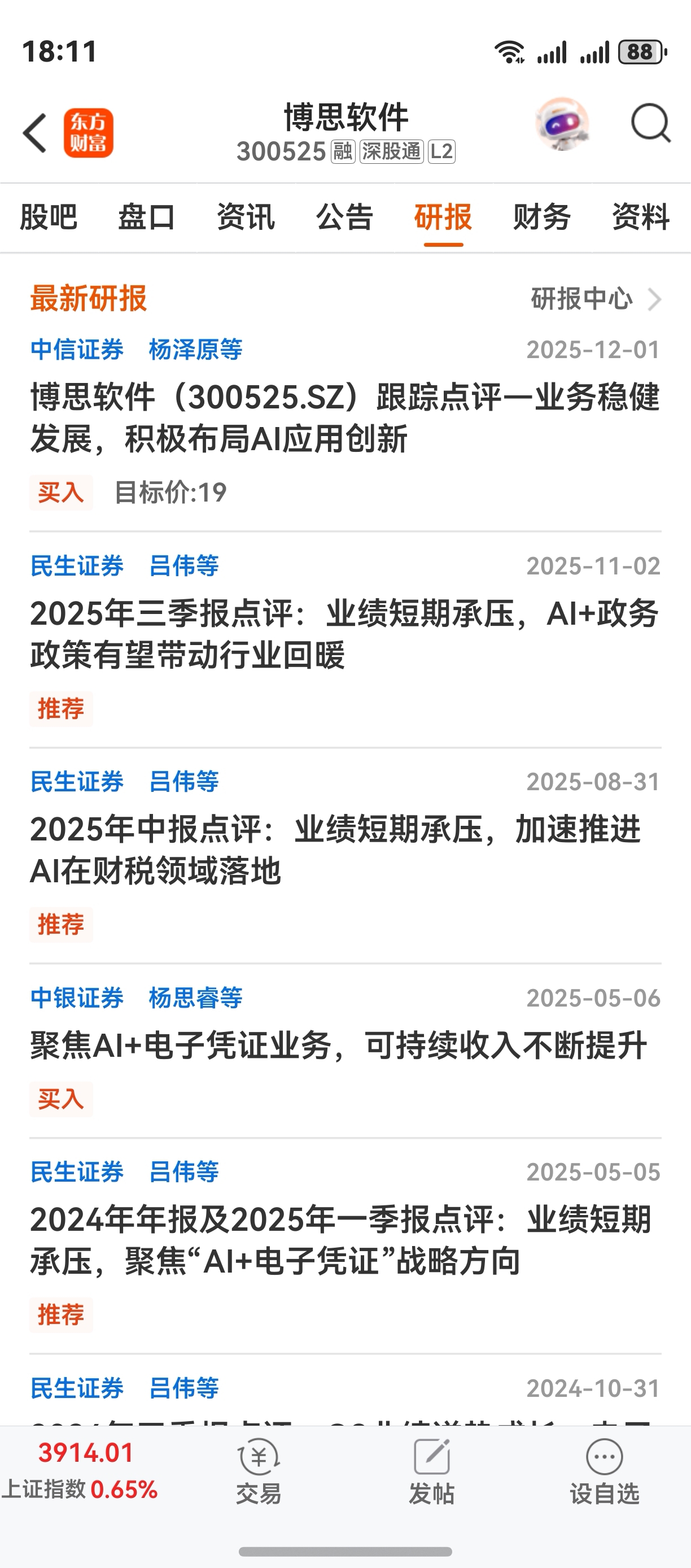 中信证券今日发布一份关于博思软件的研报:研报评级买入,买入目标价19元…这难道又