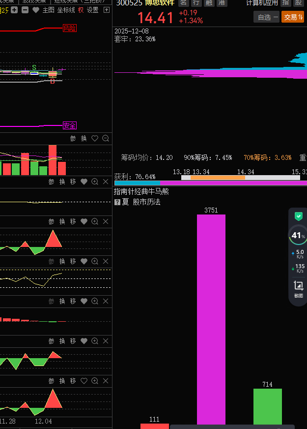哪位有指南针分析软件的股友,给分析一下筹码底部发紫色的意义?是止跌企稳?还是下降