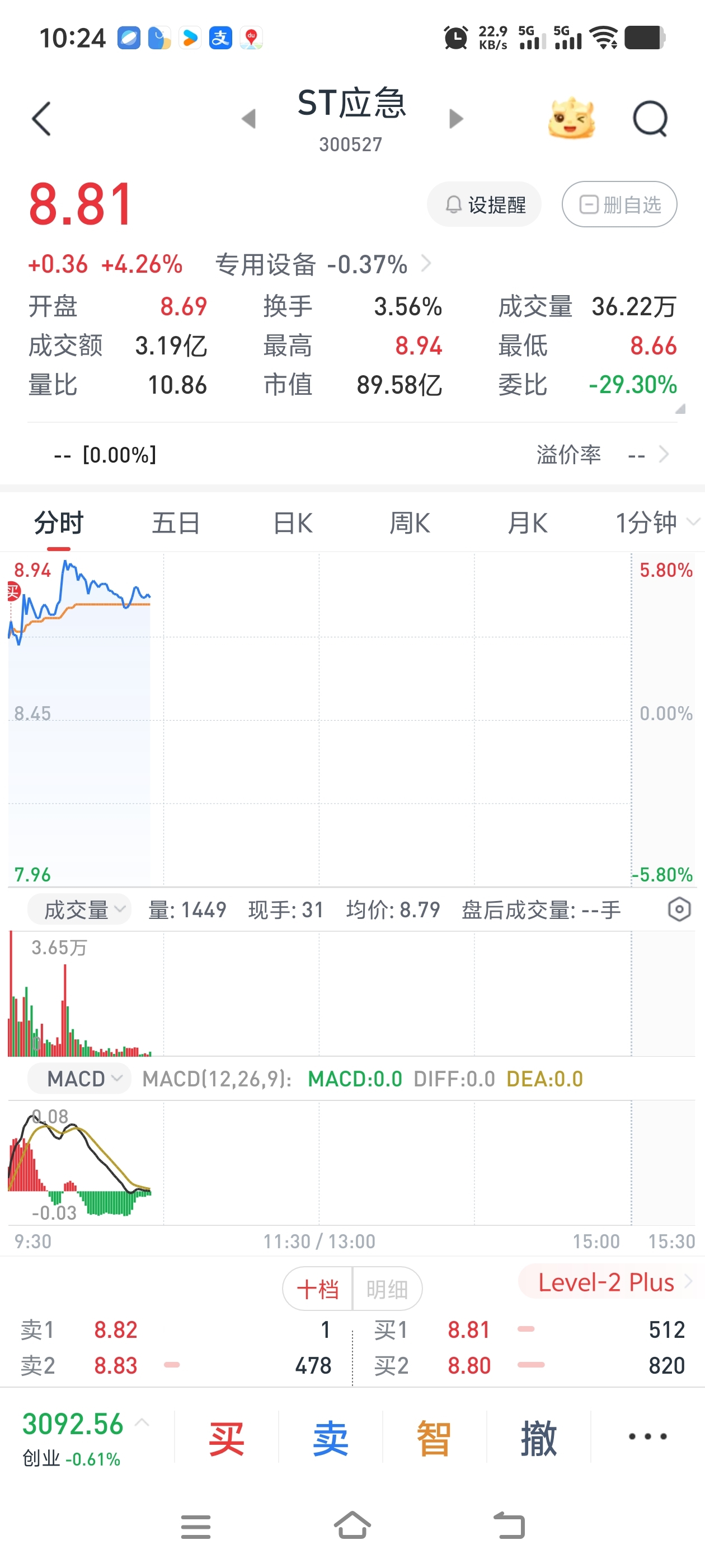 $ST应急(SZ300527)$ 今天不要求涨太多,上9就很好了。