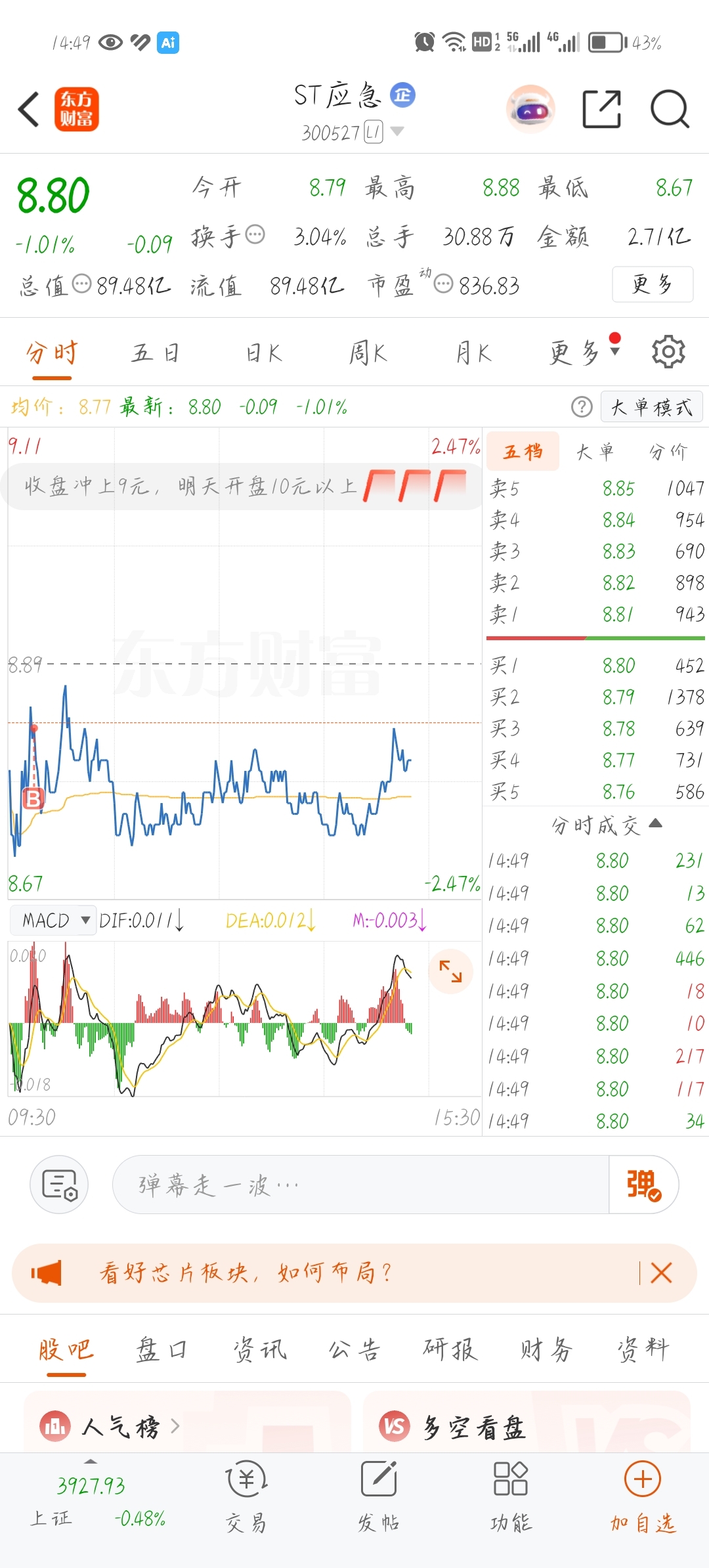 $ST应急(SZ300527)$ 883进的!收场883我就知足
