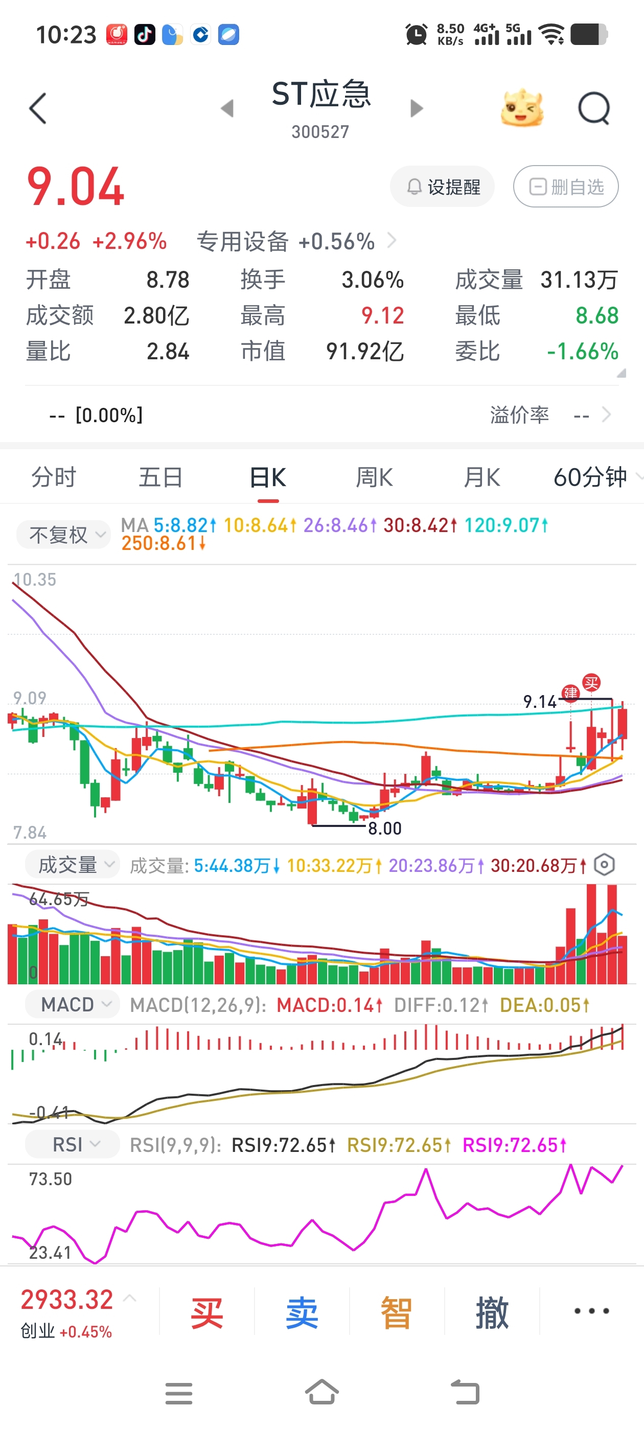 $ST应急(SZ300527)$ 上升趋势,买了我就趴着不动,T都难得T,因为每次一T就会飞