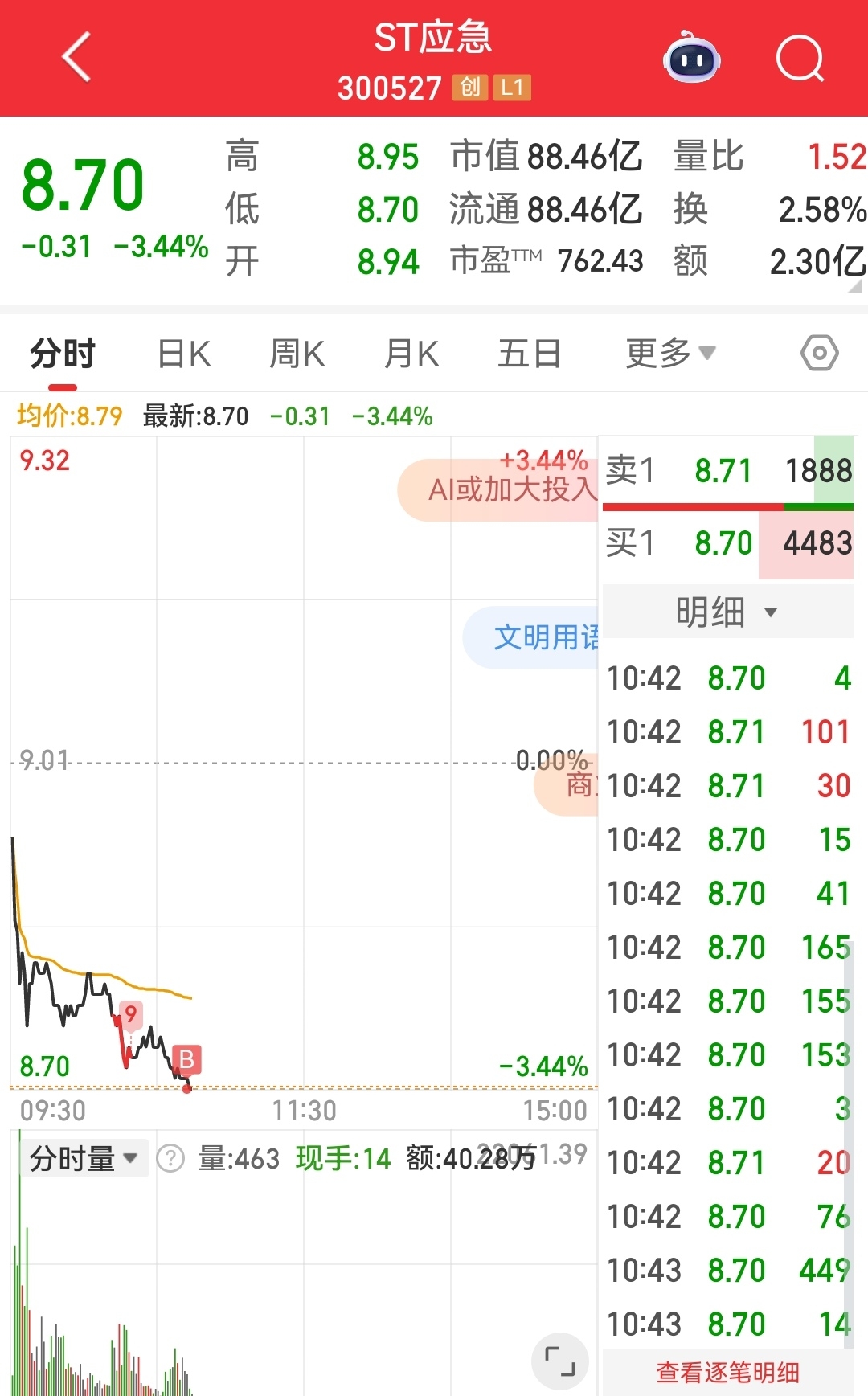 $ST应急(SZ300527)$ 第一笔买入