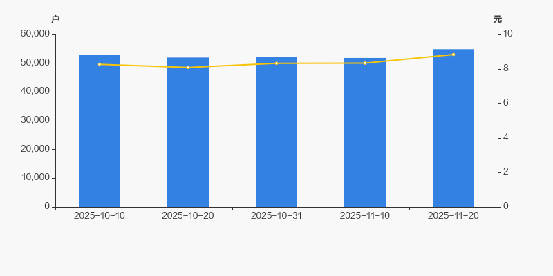 2025年10月10日至今,公司股东户数有所增长,区间涨幅为3.67%。2025年10月10日至2025年11月20日区间股价上涨6.89%。