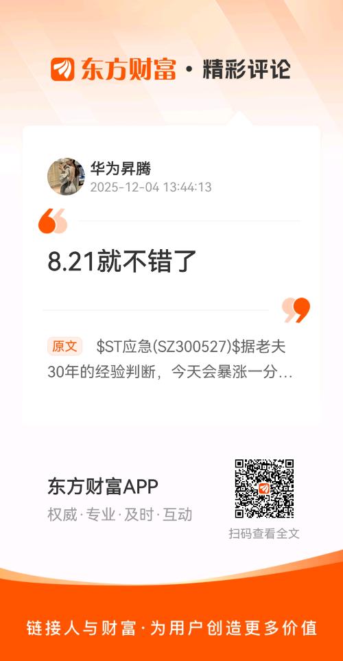 温馨提示: 1.根据《证券法》规定,禁止编造、传播虚假信息或者误导性信息,扰乱证券市场;2.用户在本社区发表的所有资料、言论等仅代表个人观点,与本网站立场无关,不对您构成任何投资建议。用户应基于自己的独立判断,自行决定证券投资并承担相应风险。《东方财富社区管理规定》