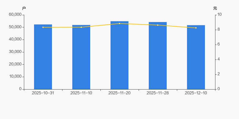 2025年10月31日至今,公司股东户数有所下降,区间跌幅为1.11%。2025年10月31日至2025年12月10日区间股价下降0.96%。