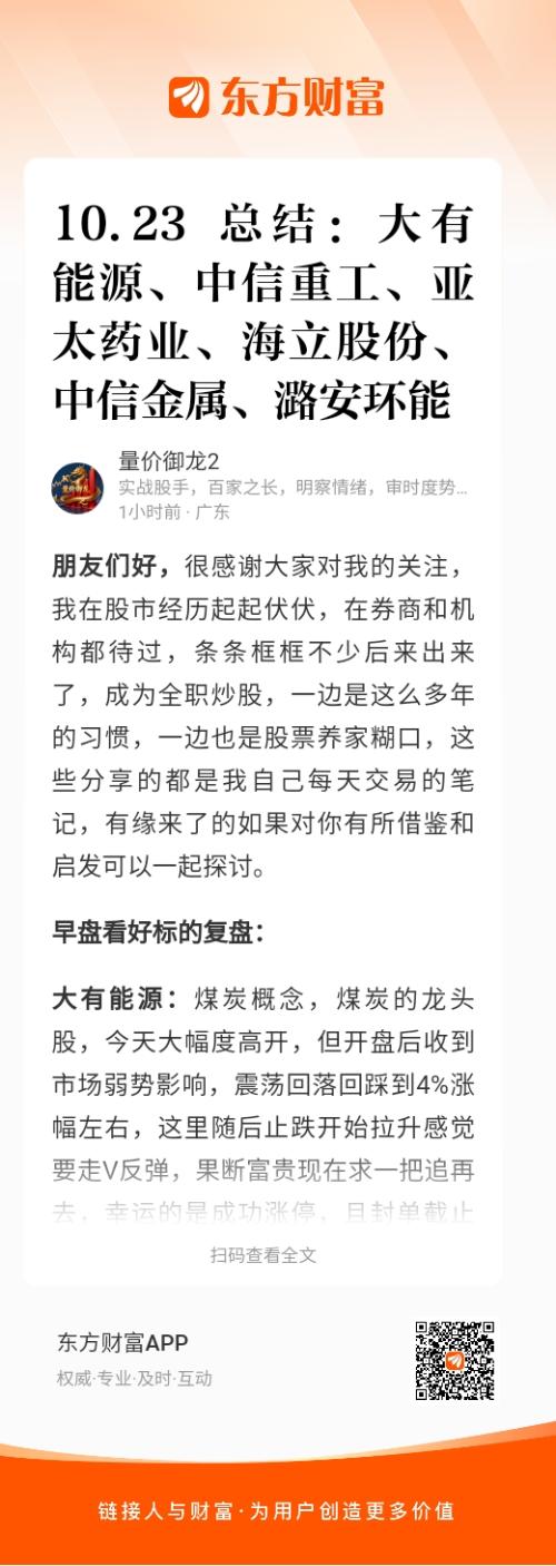 中信重工:深地经济+R机器R,今天也是大幅度高开,但该股4连板夹着一字板,换手和承接情绪没有大有强,大有已经形成趋势妖,中信还没有,开盘后震荡回落不断创新低,所以先观望,等均线趋势上移,企稳后续在抓反包。