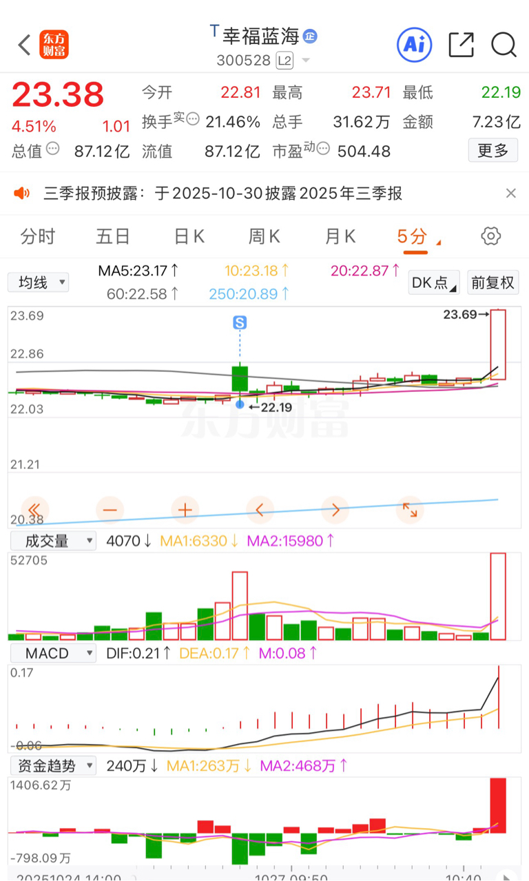 $幸福蓝海(SZ300528)$ 主力运气真好,能搭乘新概念的顺风车