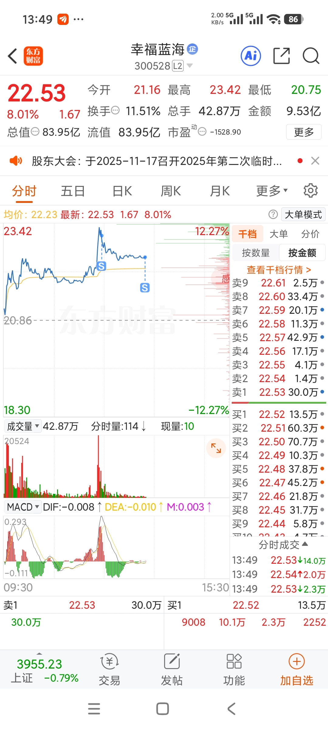 $幸福蓝海(SZ300528)$ 算了,走了,蓝海吃了两波了,再涨我也不后悔了