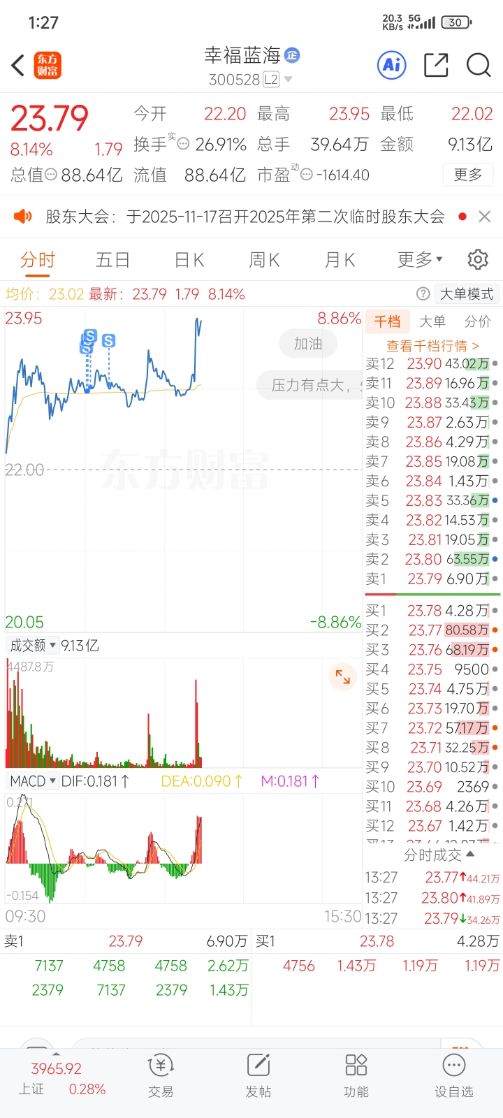 $幸福蓝海(SZ300528)$ 天,好像下雨了