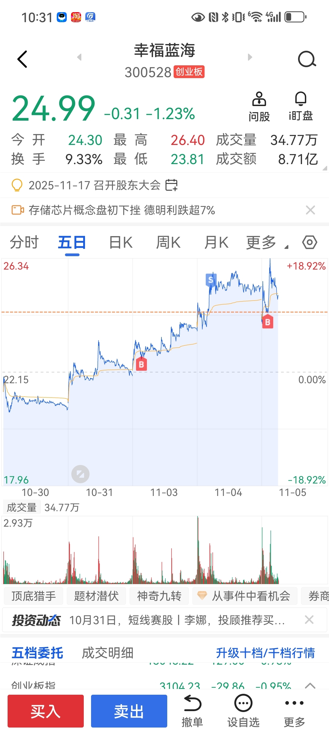 $幸福蓝海(SZ300528)$ 重新来陪你们站岗